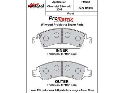 Wilwood 150-D1363K ProMatrix Brake Pad Set, Pad #D1363 |
