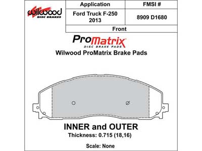 Wilwood ProMatrix Med-High Temperature pads have a true dual-sport performance compound for everyday street driving with the friction and heat range capabilities to handle aggressive driving on the track using OE production calipers. The street-friendly, quiet-running, light dust, non-ceramic formula provides positive response with low wheel maintenance. The Wilwood ProMatrix brake pads are track-ready with low rotor abrasion, high fade resistance, and consistent response during hard braking cycles. Ideal for drag racing, off-road, autocross and track events, as well as 4x4’s, towing, fleet vehicles, and heavy-wheel Trucks and SUV’s.