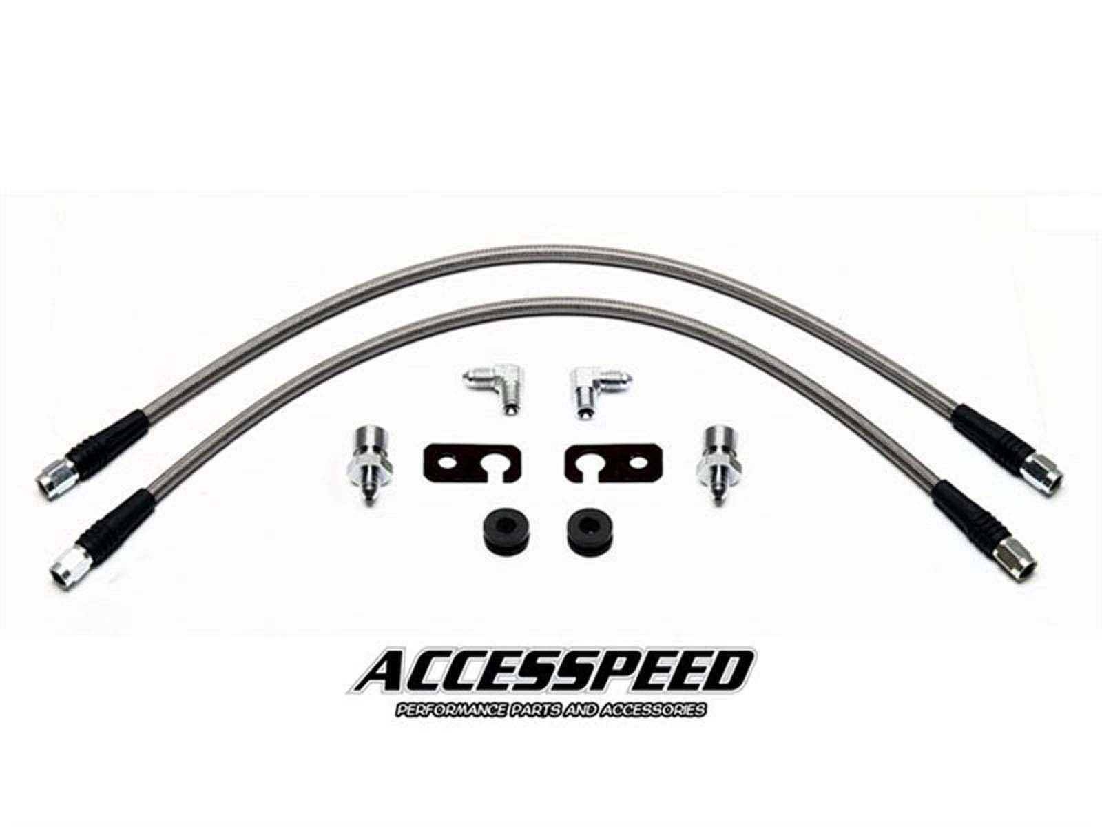 Wilwood’s stainless steel braided Flexline Kits are manufactured to high quality standards and are available in various styles. These premium grade Flexline kits have been designed for application specific kits. They are available as an optional item when ordering your disc brake kits and include all the required fittings. Wilwood highly recommends using these top quality Flexlines as replacement for the OE rubber brake hoses. Accesspeed offers a wide variety of Wilwood braided stainless steel brake lines and brake line kits and brake adapter fittings for a wide variety of Wilwood disc brake and big brake kit applications.
