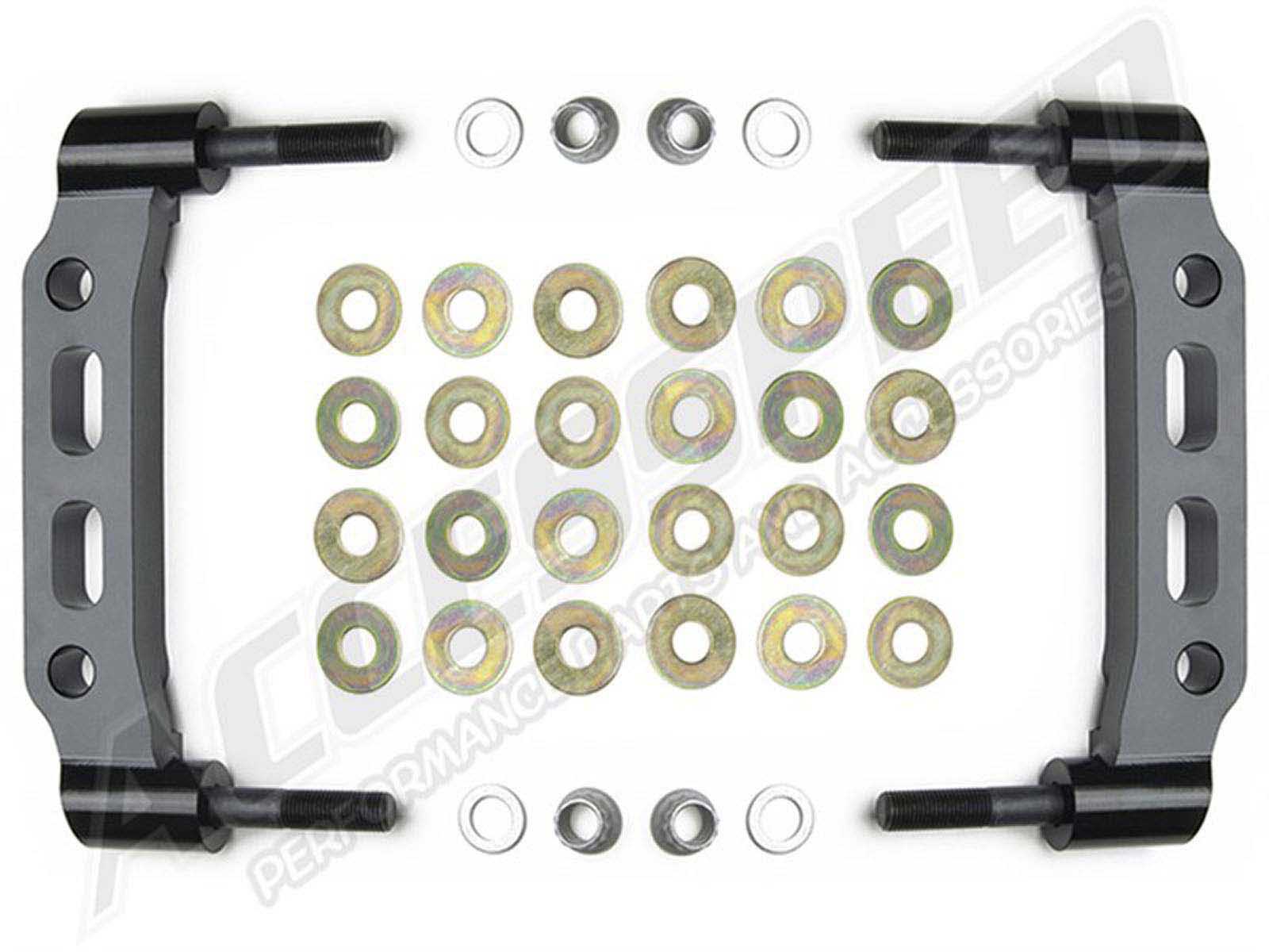 Wilwood’s XRZ4R bracket mounts the XRZ4 Radial Mount calipers to 3.50” center to center lug mount used on the front Late Model and N.E. Modified Asphalt spindles. Accesspeed race customers are loving the new XRZ Calipers and this bracket kit makes it an easy transition for most race cars. Mounting height is optimized to allow mounting this caliper in applications that use 11.75” or 12.19” diameter rotors depending on current spindle bracket. Mounts have 10-degree clocking to allow more upper A-arm clearance. Brackets are a pair L/H & R/H and include studs, shim, and the mounting hardware.