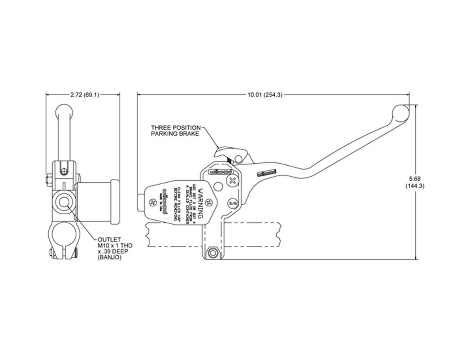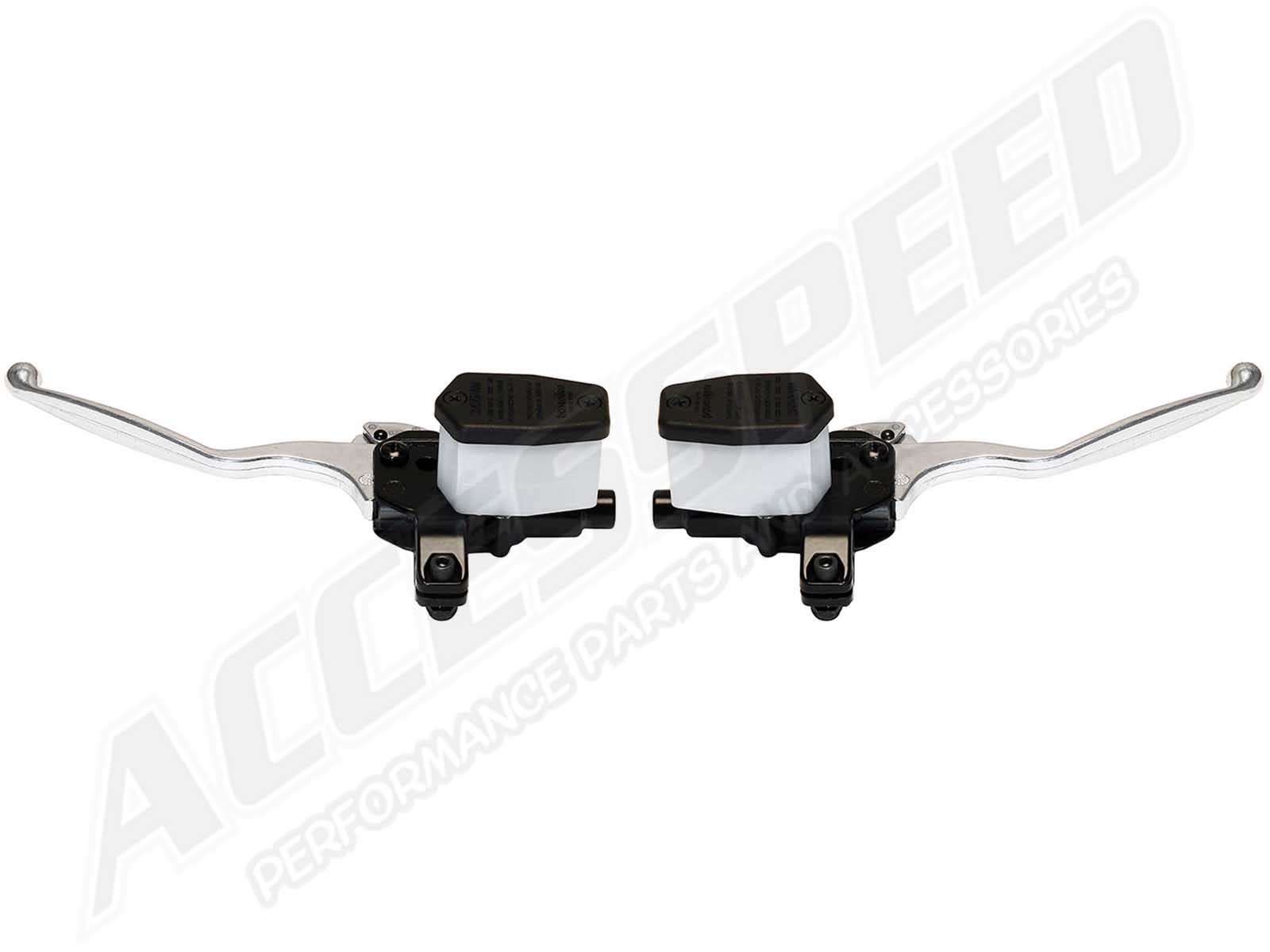 Wilwood's 5/8” bore Left-Hand & Right-Hand Handlebar Master Cylinder combo from Accesspeed is compact, lightweight and specifically designed for a variety of recreational, sport and outdoor equipment applications. Constructed of materials and finishes designed to resist corrosion, the Wilwood master cylinder fits standard 7/8” diameter handlebars. Impact resistant lever assembly comes with a three-position hydraulic parking brake lock. The housing is designed to accept a threaded brake light switch (1/4-32). The large capacity reservoir is translucent for easy fluid level viewing. The fluid inlet accepts an M10 x 1 thread, Banjo type fitting.