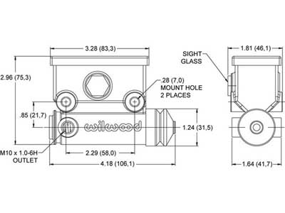 Wilwood’s ATV Master cylinder is available in both L/H and R/H mounting configurations and 19mm bore. Side mounting with a dimension of 2.29" center to center and a 10mm x 1.0 fluid outlet. Dot 5 versions use seals specially designed for Dot 5 silicone fluid use. Aluminum lid and body construction with a black anodized finish.