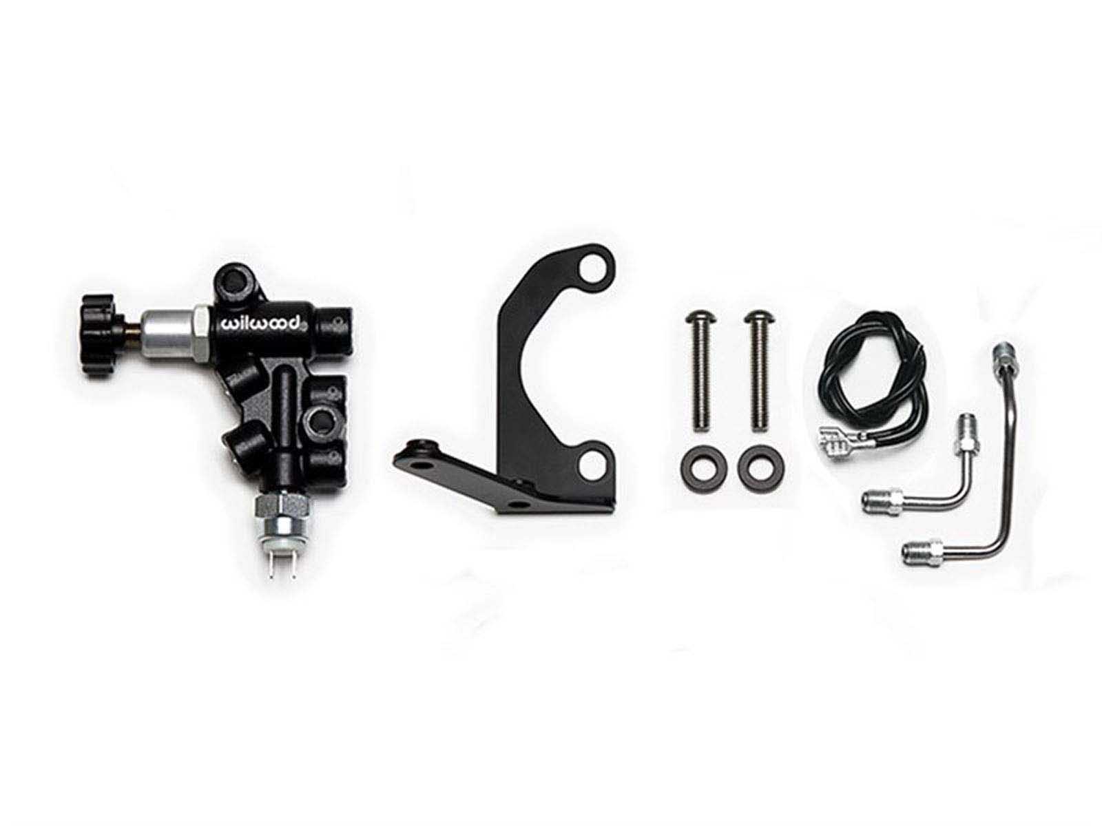 Wilwood finally has an elegant answer to the question, "Where do I mount my Combination Proportioning Valve?" with their new Mounting Bracket Kit. Specifically designed to work in conjunction with Wilwood Compact Tandem Master Cylinders (P/N’s 260-14957 thru 260-14960 and 260-15520 thru 260-15541), in manual or boosted system applications. Kit includes stainless-steel fluid tubes are precision bent with preinstalled stainless tube nuts for a simple bolt-on installation between the Combination Proportioning Valve and the Wilwood Tandem Master Cylinder. Stainless-steel button head fasteners thread into the black e-coated R/H bracket for a simple installation and years of durable, rust-free performance. This complete Mounting Bracket Kit includes all the mounting hardware, plus a Combination Proportioning Valve, 260-11179.