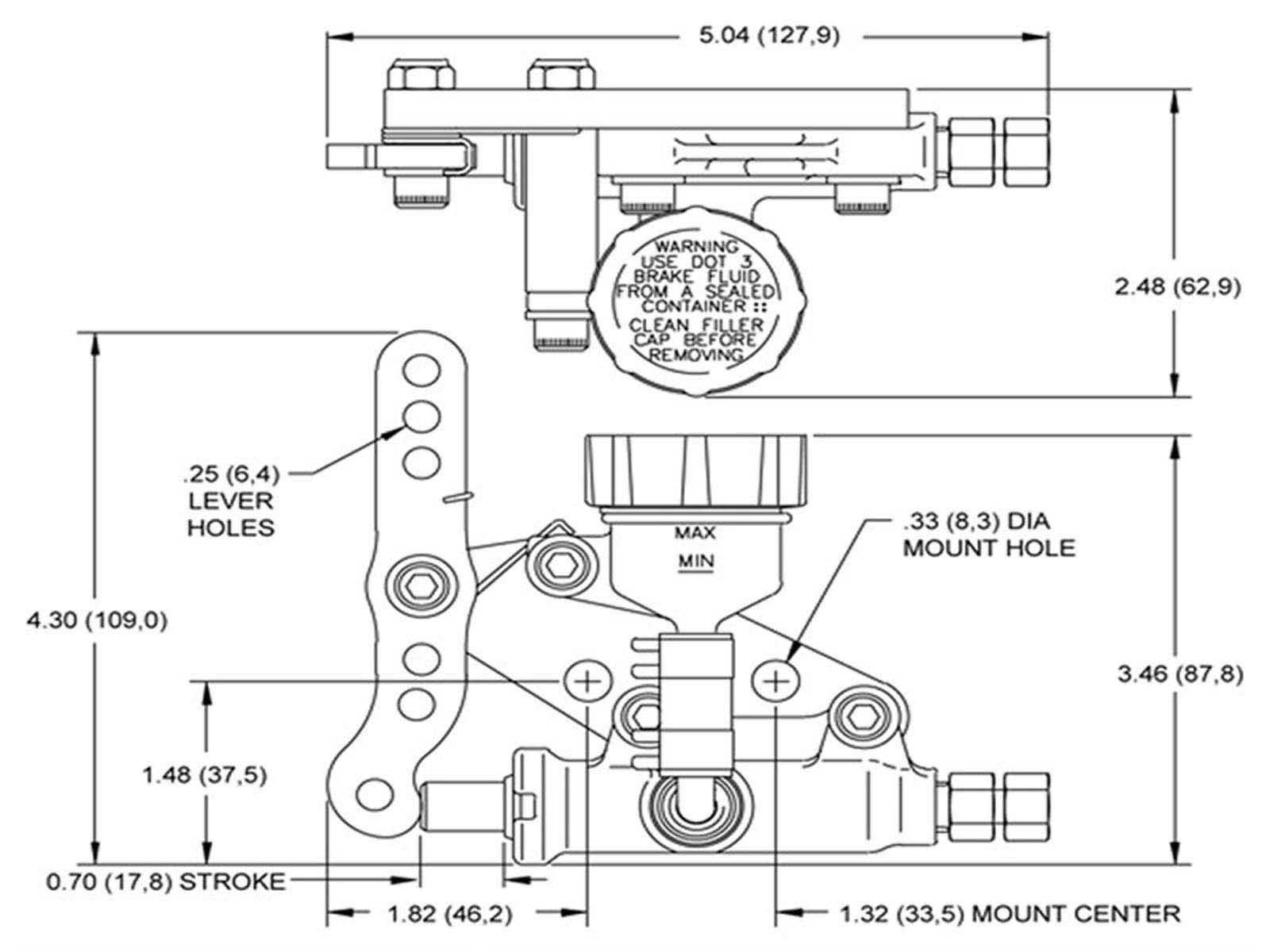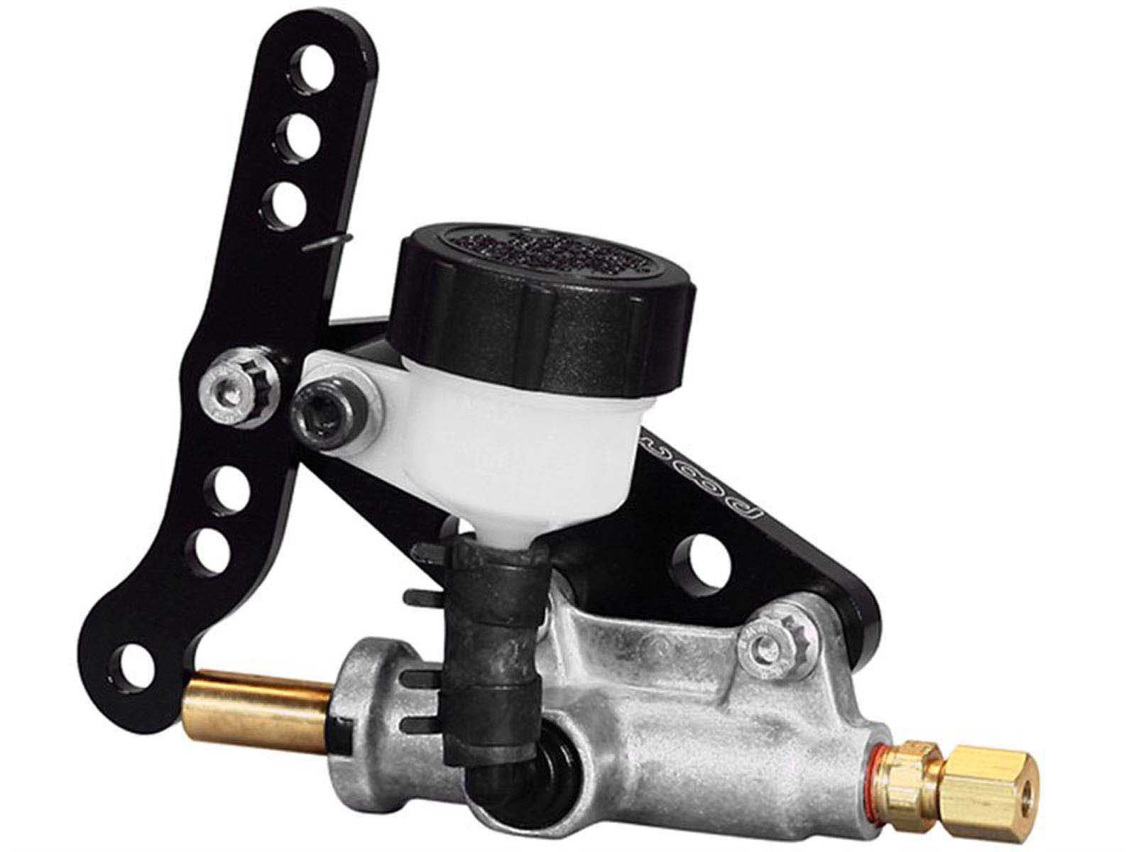 Wilwood’s super lightweight (only .55 pounds) 1/2-inch bore aluminum master cylinder designed specifically for Kart and Jr. Dragster racing applications incorporates an adjustable lever ratio with a remote mount clear fluid reservoir for easy monitoring. The assembly comes ready to install and includes billet bracket, lock-wired drilled hardware and fluid line fitting. The unit is best utilized in conjunction with Wilwood’s Kart / Jr. Dragster caliper.