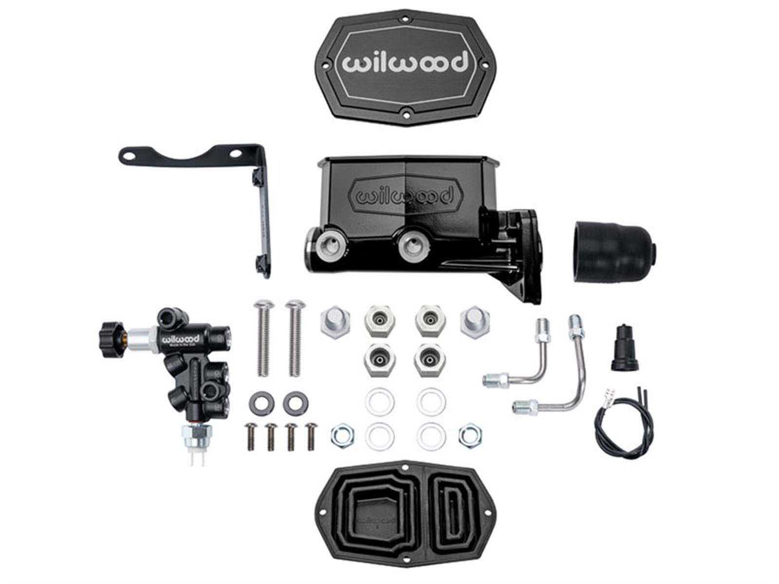 Wilwood 261-16797-BK Tandem Compact Black 1" Bore Master Cylinder Kit with L/H Bracket & Proportioning Valve for Mopar 4-Bolt