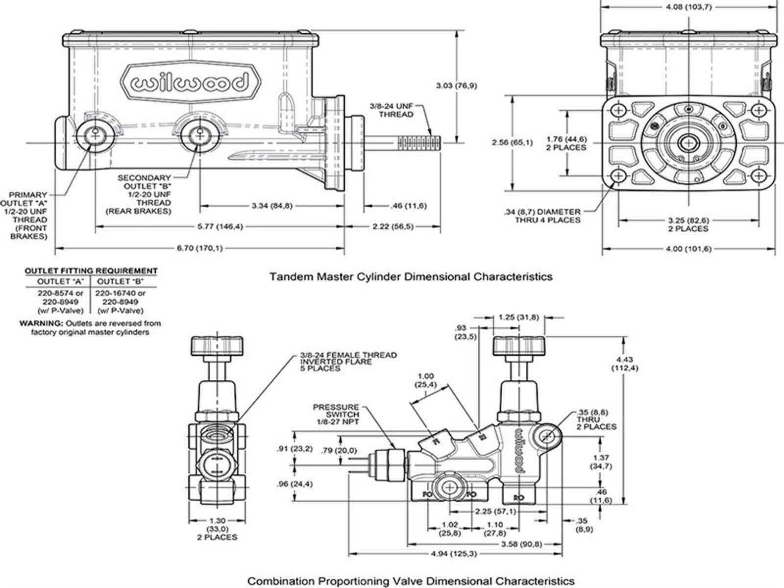 Wilwood now makes a performance master cylinder with a flange specifically for Mopar's unique 4-bolt pattern, and Accesspeed has several options for you. The rectangular mounting flange of our Mopar Compact Tandem master cylinder matches the A-body, B-body and the E-body firewall mounts in the 1960's and 70's. Available in 15/16", 1.00" and 1-1/8" bore sizes without pushrod, 15/16"" and 1.00 with pushrod and Mopar style eyelet. Available in either a chrome powder coat finish or a glossy black E-coat to complement any engine bay. These kits are available that include a combination valve with a hydraulic brake light switch, adjustable proportioning valve, bracket, and plumbing.