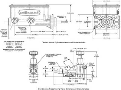 Wilwood now makes a performance master cylinder with a flange specifically for Mopar's unique 4-bolt pattern, and Accesspeed has several options for you. The rectangular mounting flange of our Mopar Compact Tandem master cylinder matches the A-body, B-body and the E-body firewall mounts in the 1960's and 70's. Available in 15/16", 1.00" and 1-1/8" bore sizes without pushrod, 15/16"" and 1.00 with pushrod and Mopar style eyelet. Available in either a chrome powder coat finish or a glossy black E-coat to complement any engine bay. These kits are available that include a combination valve with a hydraulic brake light switch, adjustable proportioning valve, bracket, and plumbing.