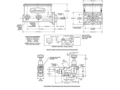 Wilwood now makes a performance master cylinder with a flange specifically for Mopar's unique 4-bolt pattern, and Accesspeed has several options for you. The rectangular mounting flange of our Mopar Compact Tandem master cylinder matches the A-body, B-body and the E-body firewall mounts in the 1960's and 70's. Available in 15/16", 1.00" and 1-1/8" bore sizes without pushrod, 15/16"" and 1.00 with pushrod and Mopar style eyelet. Available in either a chrome powder coat finish or a glossy black E-coat to complement any engine bay. These kits are available that include a combination valve with a hydraulic brake light switch, adjustable proportioning valve, bracket, and plumbing.