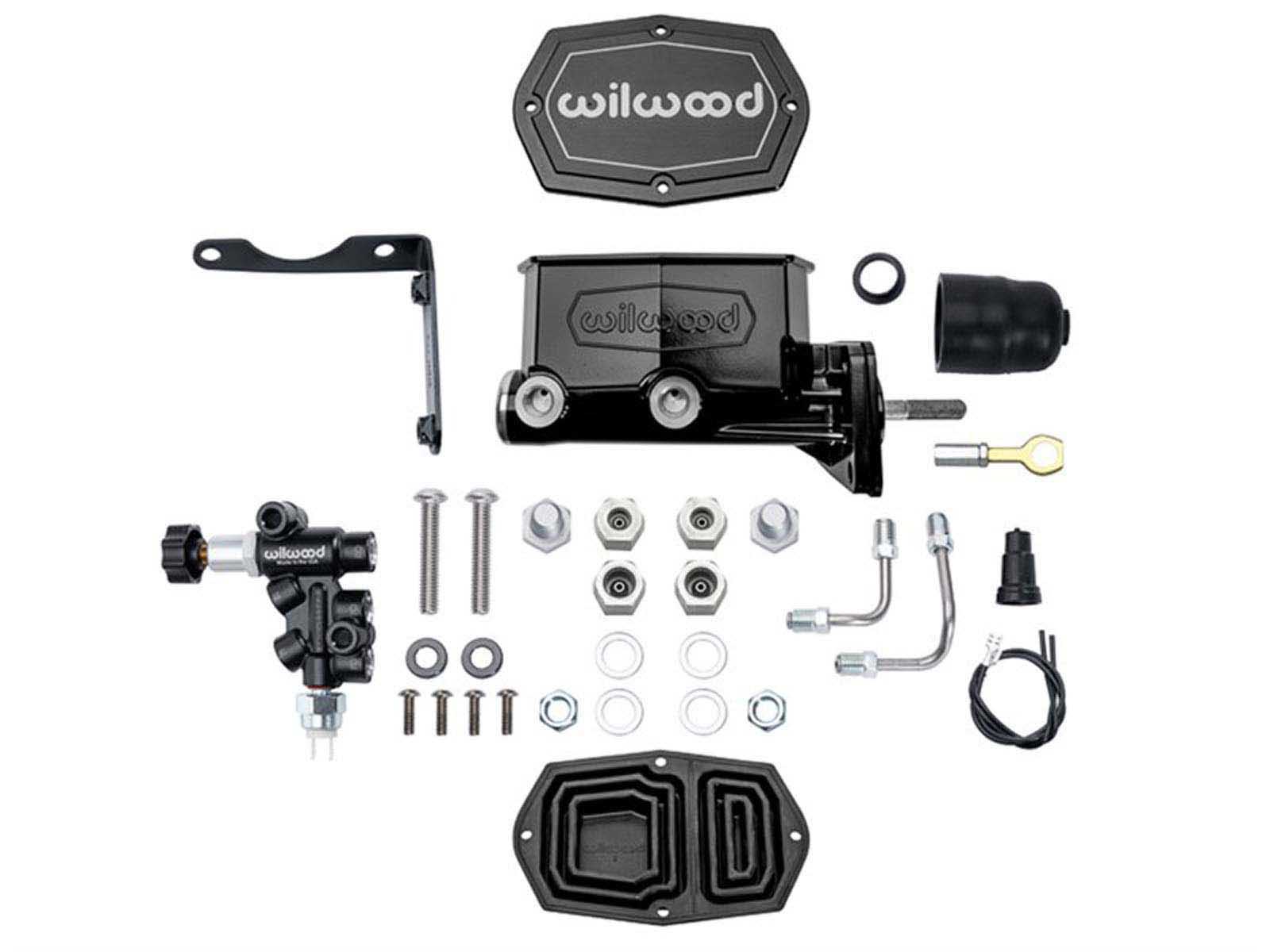 Wilwood 261-17319-BK Tandem Compact M/C Kit, L/H Bracket & Prop Valve, 1" Bore, Black-W/Push, Mopar |