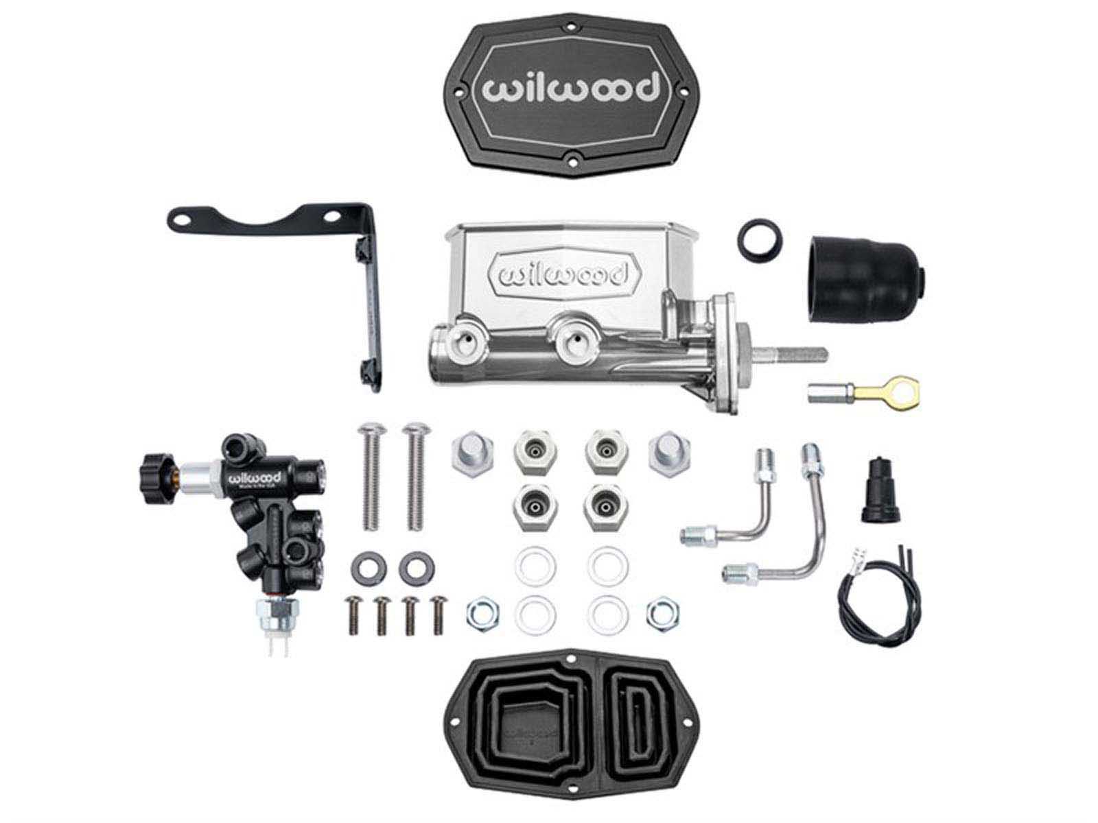 Wilwood 261-17319-P Tandem Compact Chrome 1" Bore Master Cylinder Kit with L/H Bracket, Proportioning Valve & Pushrod for Mopar 4-Bolt