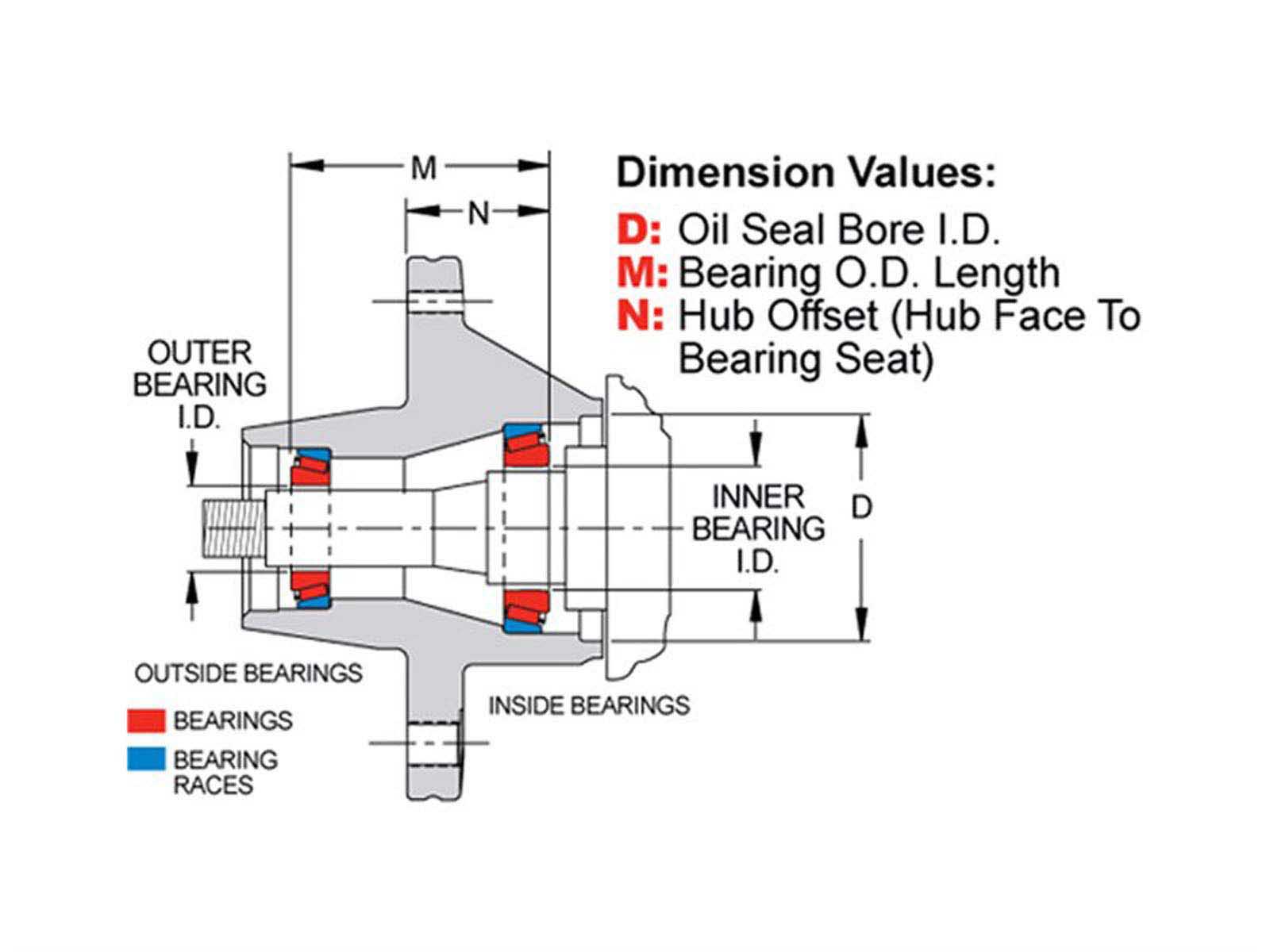 Forged Billet Hat Mount Hubs are made from premium grade alloy billets are forged into shape under high heat and pressure, then CNC machined for precise fit on each spindle application. Intended for use with used with aluminum mounting hats, this specific hub is double drilled on a 5 x 4.50" / 5 x 4.75" wheel lug pattern. Hubs include bearing races and screw-on aluminum caps.