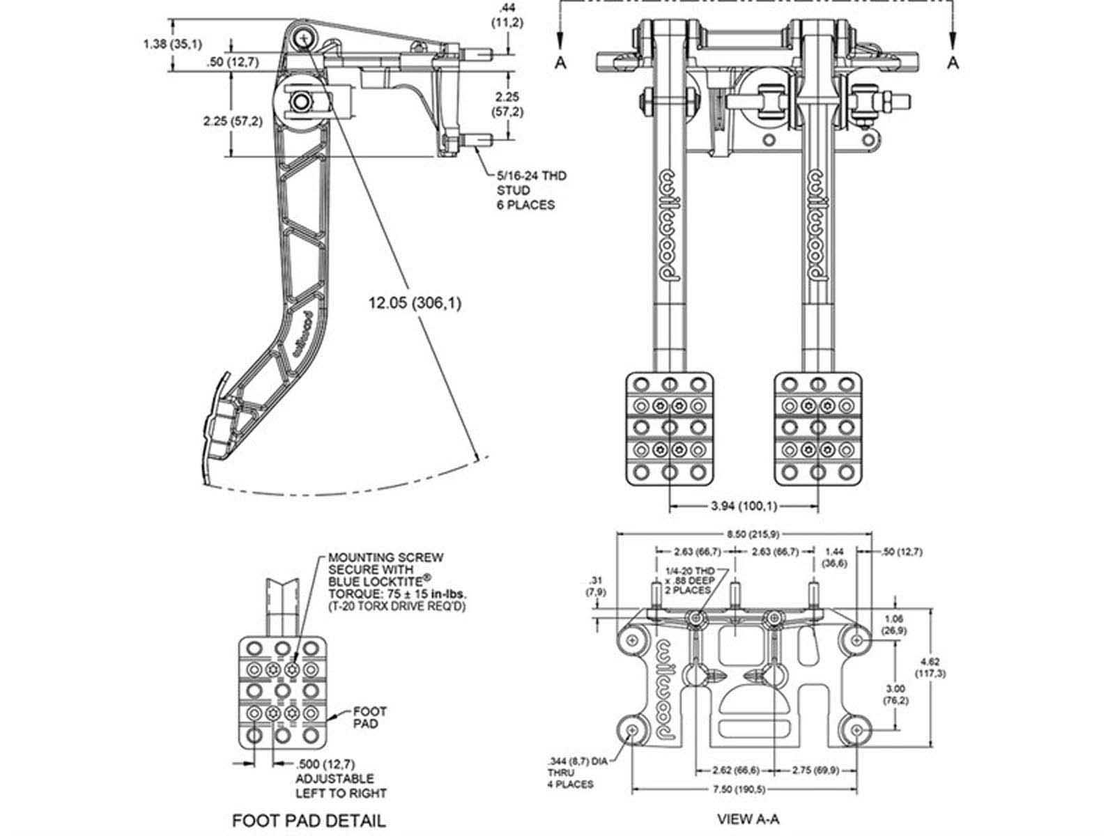 Wilwood 340-11299 Adjustable Dual Pedal - Brake / Clutch - Rev. Swing Mount - 6.25:1