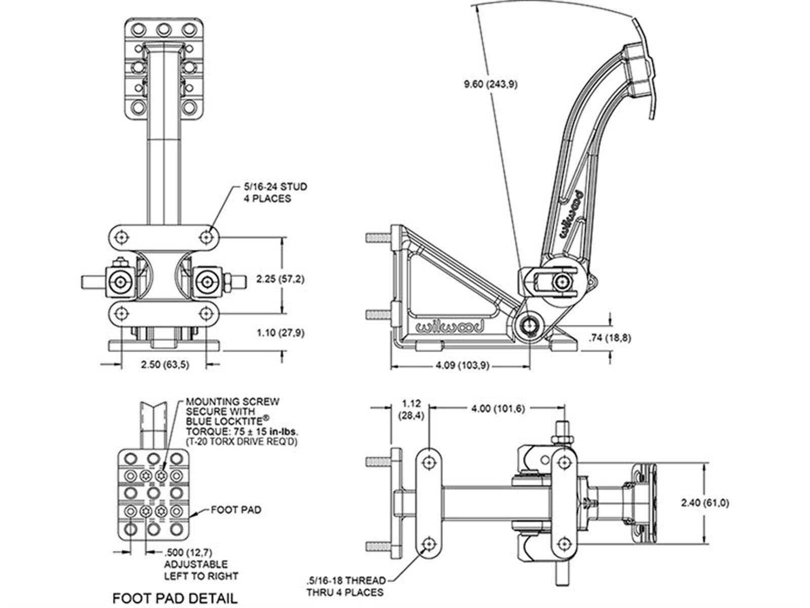 Wilwood 340-13831 Adjustable Brake Pedal, Dual MC, Floor Mount, 6:1 |
