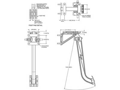 Wilwood’s swinging mount pedal assembly mounts two single outlet brake master cylinders in a forward position outside the firewall. It features a lightweight aluminum frame, with a high strength reinforced I-Beam style forged 10:1 ratio pedal arm. The non-skid waffled pedal pad can be laterally adjusted for driver preference or clearance as necessary. The balance bar incorporates a positive detent stop every full turn to maintain adjustment position and driver awareness. A pin and clevis pushrod attachment system provides highest possible degree of misalignment angle for bind free operation through the entire range of travel. The balance bar can be locked in place with the included jam nut, or used with an optional remote cable for quick on-track adjustments. This pedal accepts any Wilwood vertical mount flange single outlet master cylinders that are ordered separately by style and bore size.