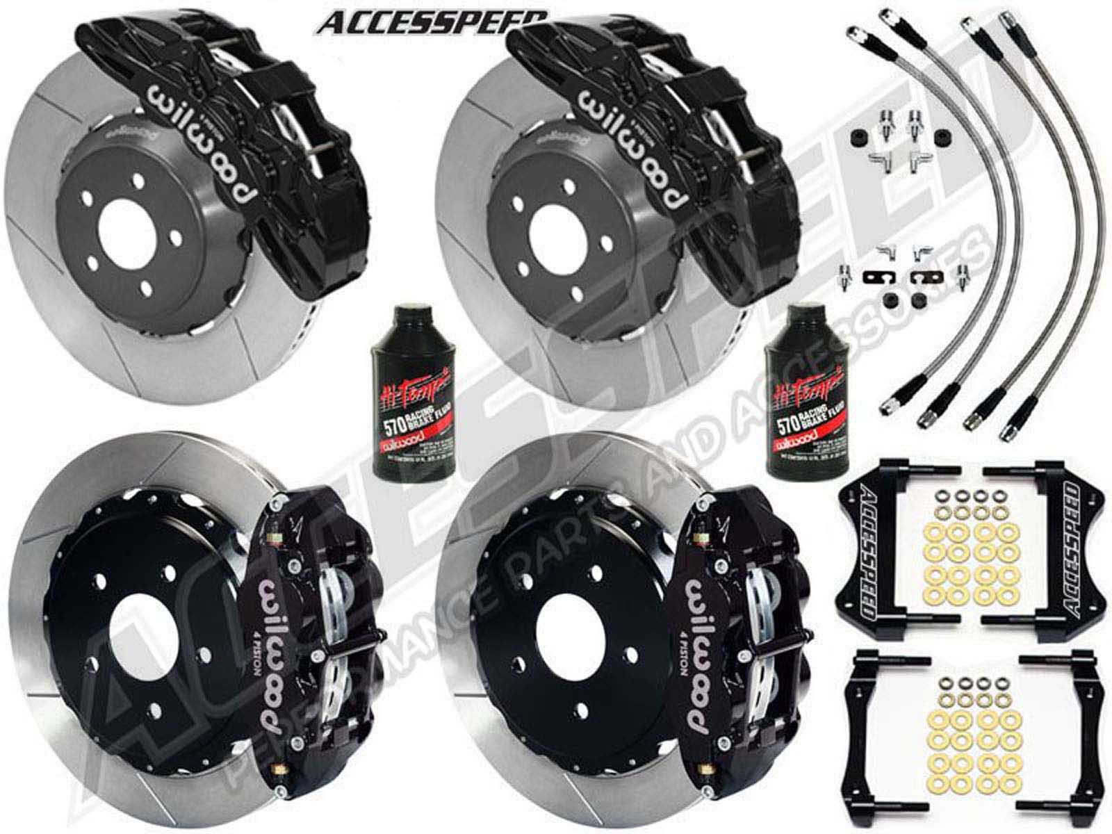 This is an all-inclusive ACCESSPEED-WIL-CAMSS-16-O Front & Rear Brake Kit, with Front & Rear Stainless Brake Lines, and 2 Bottles of Wilwood 570 Brake Fluid!