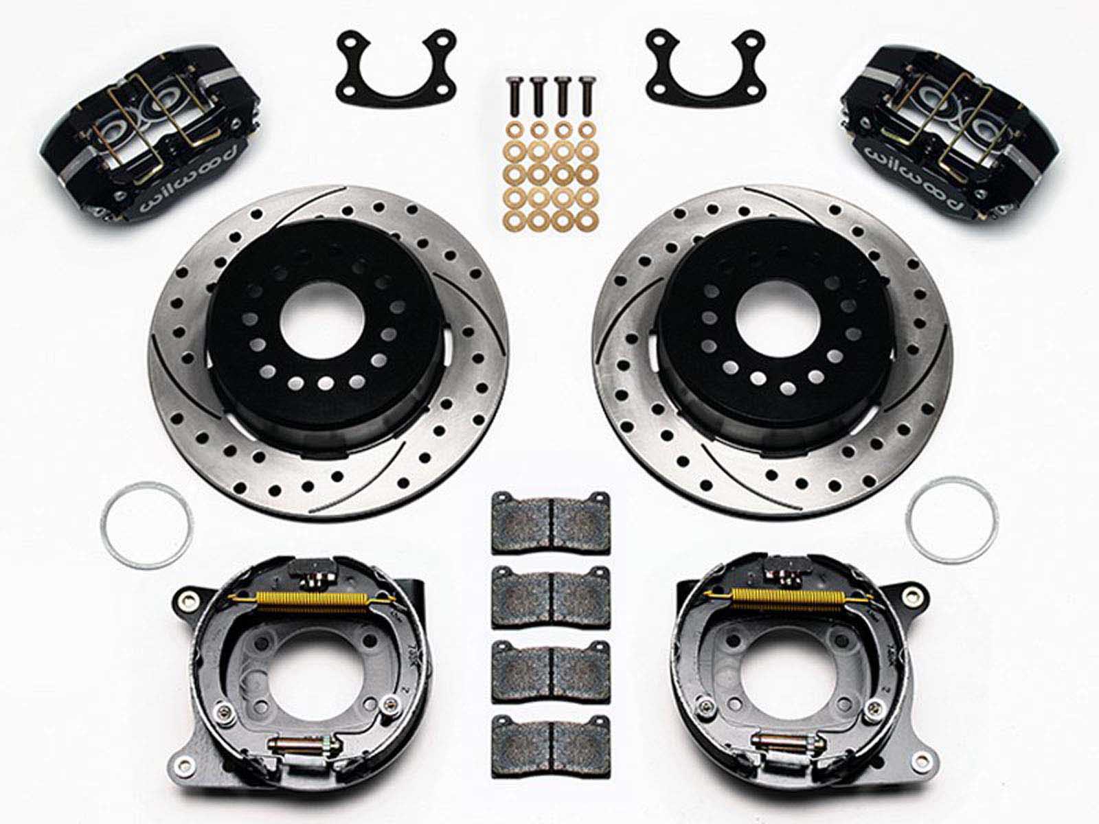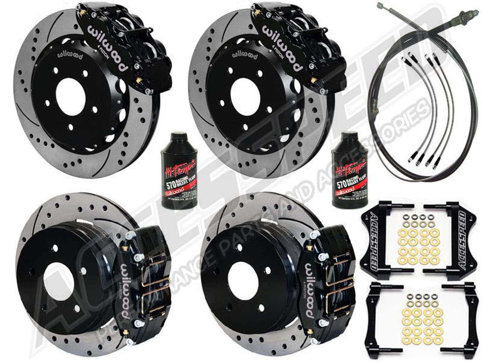 This is the all-inclusive ACCESSPEED-WIL-FB76-13-P Front & Rear Big Brake Kit, WITH Front & Rear Stainless Brake Lines, Rear Parking Brake Cable Kit, and 2 Bottles of Wilwood 570 Fluid!