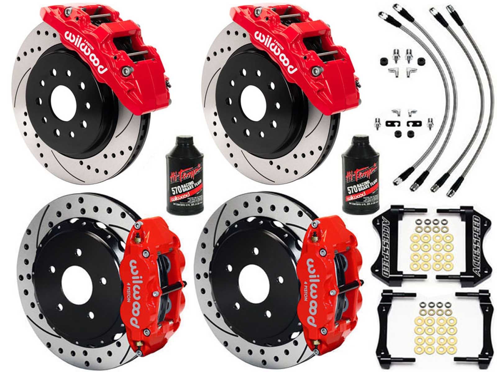 ACCESSPEED-WIL-JEEPJL18-L-R is an all-inclusive Wilwood AERO6-DM Front & Superlite 4R Rear Brake Kit, with Front & Rear Stainless Brake Lines and 2 Bottles of Wilwood 570 Brake Fluid!