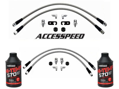 This is an all-inclusive ACCESSPEED-WIL-JEEPJT20-F-R Wilwood AERO6 Front & Superlite 4R Rear Brake Kit, with Front & Rear Stainless Brake Lines and 2 Bottles of Wilwood 570 Brake Fluid!
