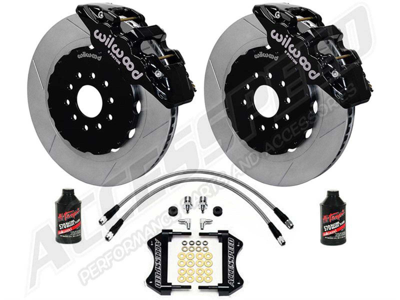 ACCESSPEED-WIL-MUS15-I Wilwood AERO6 15" Front Big Brake Kit With Black Calipers Slotted Rotors, Stainless Brake Lines & Brake Fluid 2015 2016 2017 2018 2019 Ford Mustang
