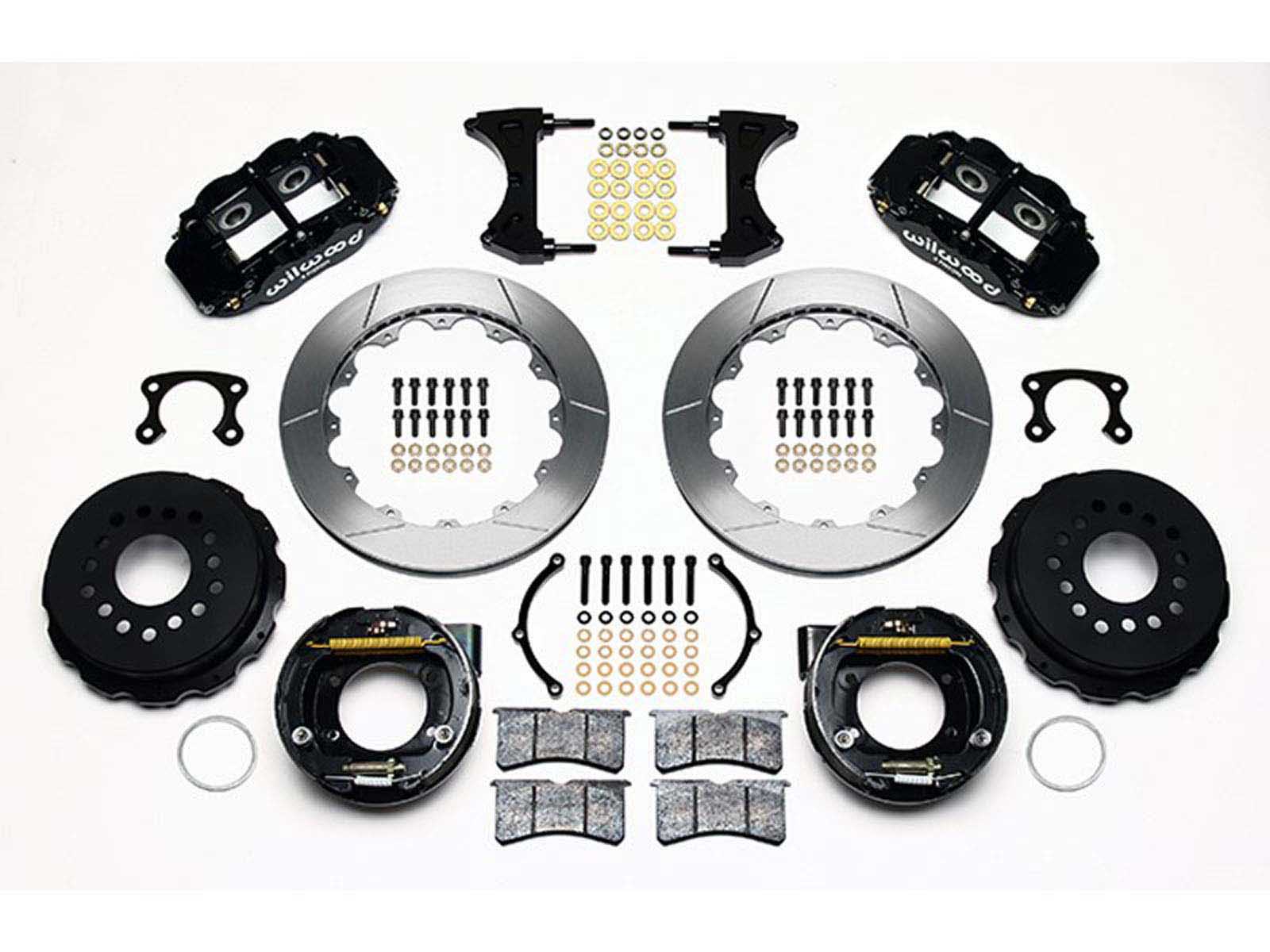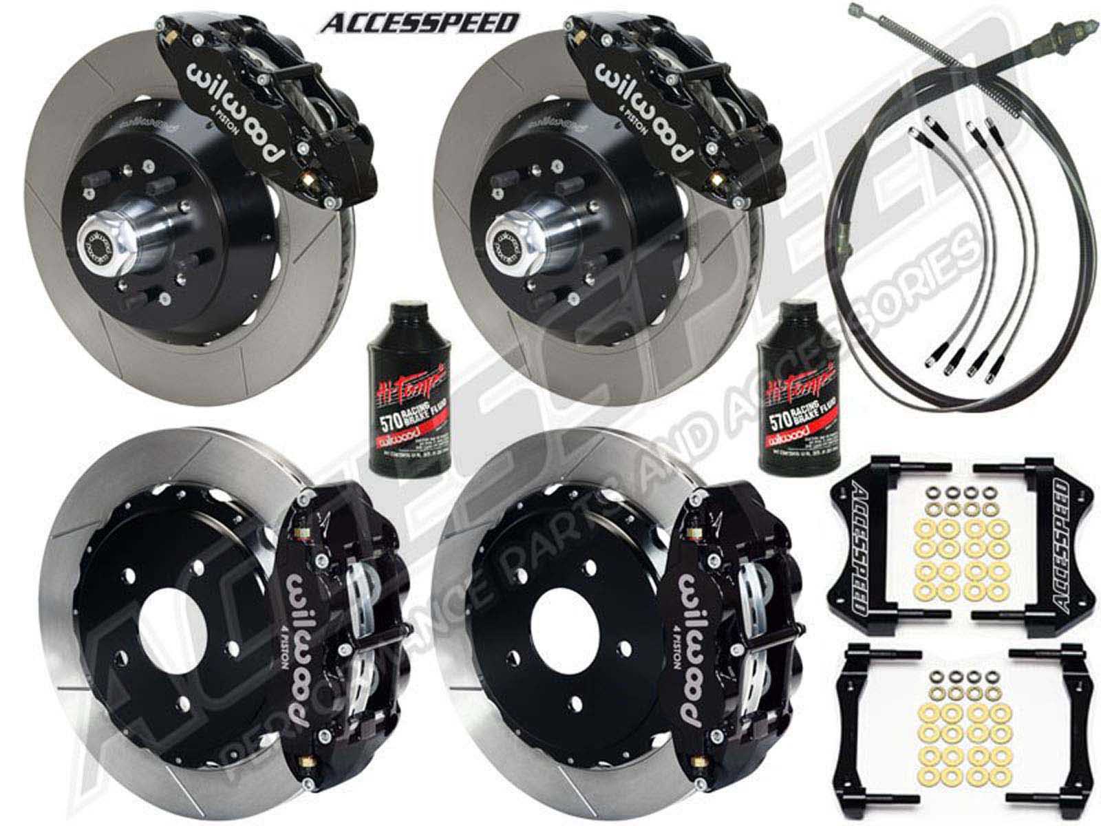 This is an all-inclusive Front & Rear Brake Kit, WITH Front & Rear Stainless Brake Lines, Rear Parking Brake Cable Kit, and 2 Bottles of Wilwood 570 Fluid!