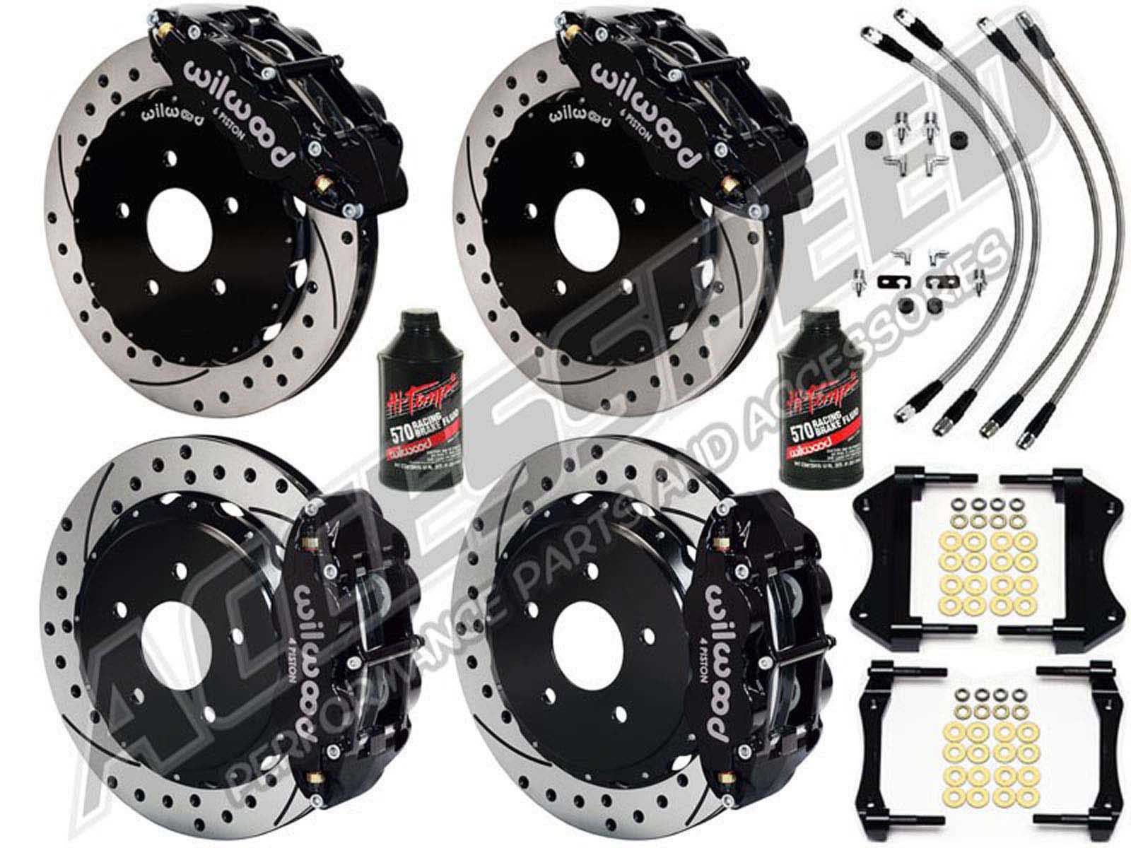 This is an all-inclusive Front & Rear Brake Kit, WITH Front & Rear Stainless Brake Lines and 2 Bottles of Wilwood 570 Fluid!