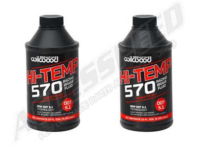 Wilwood’s specially formulated Hi-Temp° 570 Racing Brake Fluid has a minimum 570° F dry boiling point to withstand the severe heat requirements of automotive racing. Hi-Temp° 570’s low viscosity allows easy bleeding of your brake system, eliminating aeration of the brake fluid caused by foaming due to excessive pumping of the pedal. Hi-Temp° 570 comes in convenient 12 ounce containers hermetically sealed to guarantee against unwanted absorption of moisture which can drastically lower the fluids boiling point (fluid from larger containers tends to become contaminated with moisture, lowering its boiling point and making it unsuitable for racing applications).