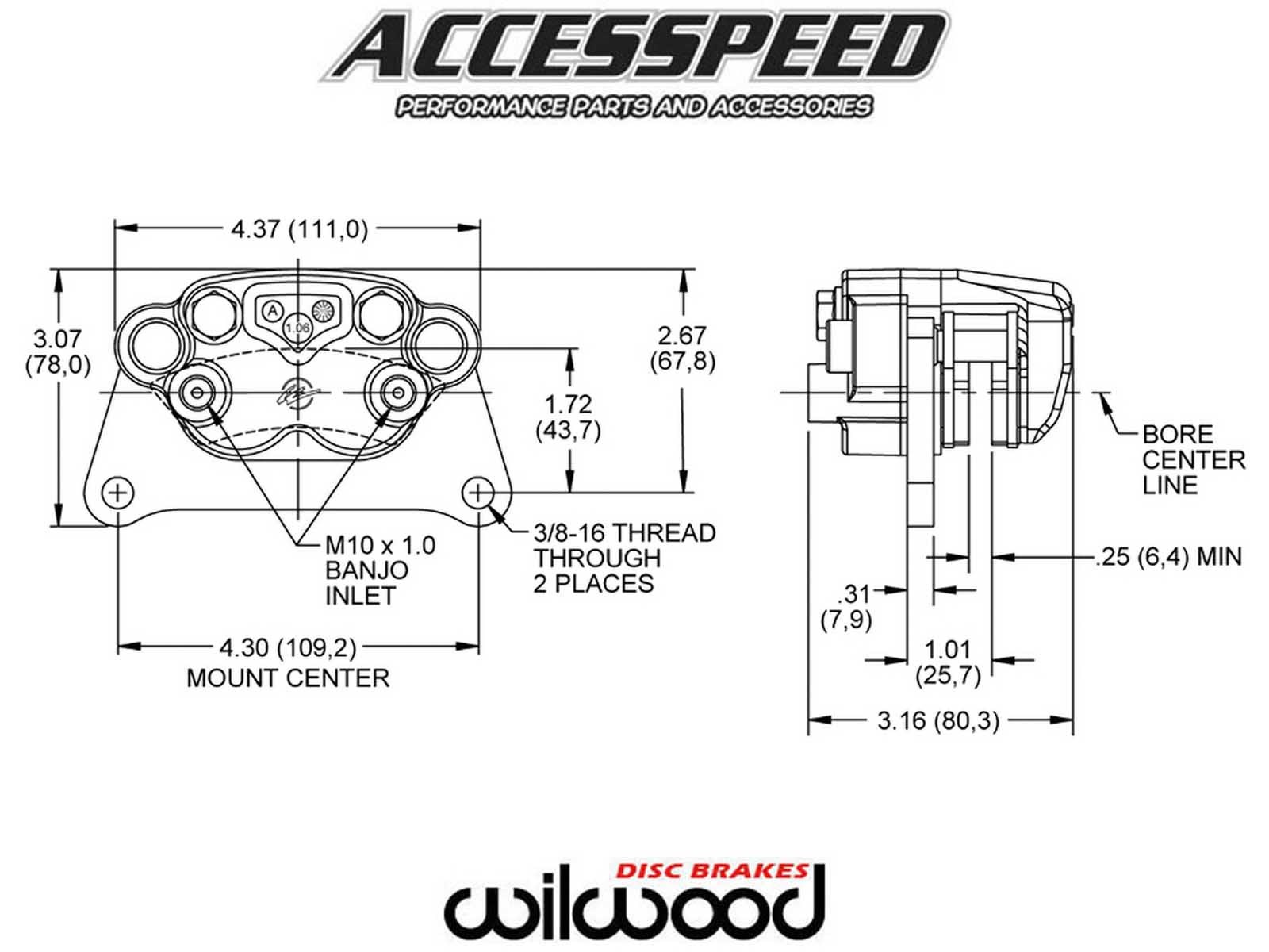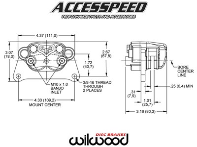 Designed, engineered and manufactured in the U.S.A., the Wilwood SC10 floating die cast aluminum caliper from Accesspeed is a strong, compact, inexpensive answer to the braking needs of recreational, agricultural and industrial vehicles. Features of this dual piston design with 1.06” bore size, dual inlet/ outlet fittings for versatility in mounting position by swapping the bleed screw and banjo bolt inlet. Inlets are threaded 10mm x 1.00. Sintered metallic brake pads and brackets are included.