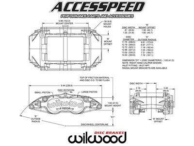 The Wilwood Forged Narrow Superlite 4R Dust Seal (FNSL4R-DS) from Accesspeed is the newest version for the venerable Superlite caliper series. The FNSL4R-DS adds the versatility and convenience of radial mounting to this widely popular caliper group. Radial mounting simplifies adaptation and provides two planes of adjustment for accurate alignment over the disc. The addition of Wilwood’s exclusive wiper dust seal allows these calipers to be used in areas that may mandate environmental sealing. These calipers integrate "Big Brake" style with Wilwood's latest technology to generate big stopping power in extreme environments over a broad range of vehicle applications.