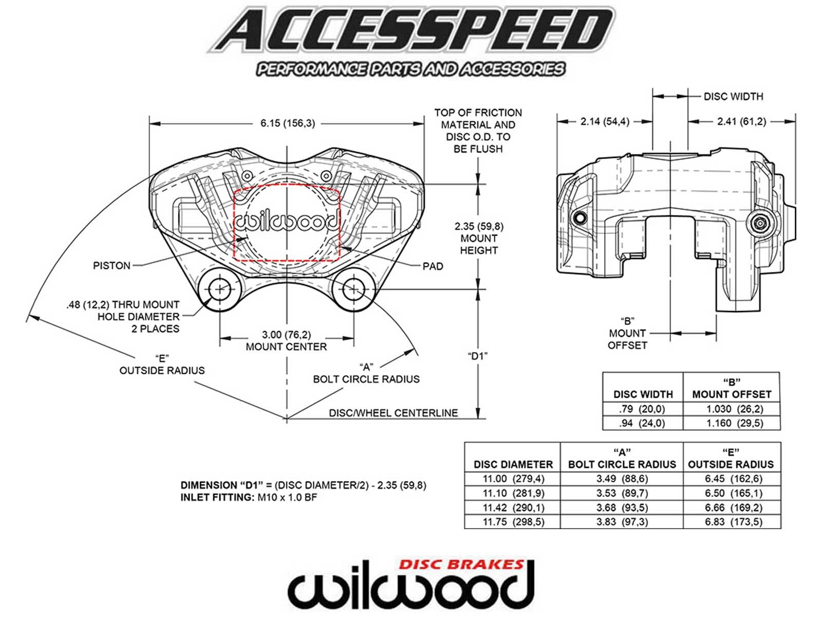 The Wilwood D31 street and racing caliper from Accesspeed provides the ultimate in strength, weight-savings, and high-efficiency brake clamping for Porsche 911 with "M" 3.00" OEM front or rear calipers. These calipers feature a high strength, lightweight 4.1 pound forged aluminum body fitted with machined stainless-steel pistons. All D31 series calipers utilize the same 3.00" mounting centers, height and offset as the traditional 911 "M" calipers. The calipers accept Wilwood and FMSI standard D31 brake pads and are compatible with stock replacement rotors and master cylinders. D31 calipers are offered in Type III hard anodize finish, and in Black, Red and Yellow coated finishes.