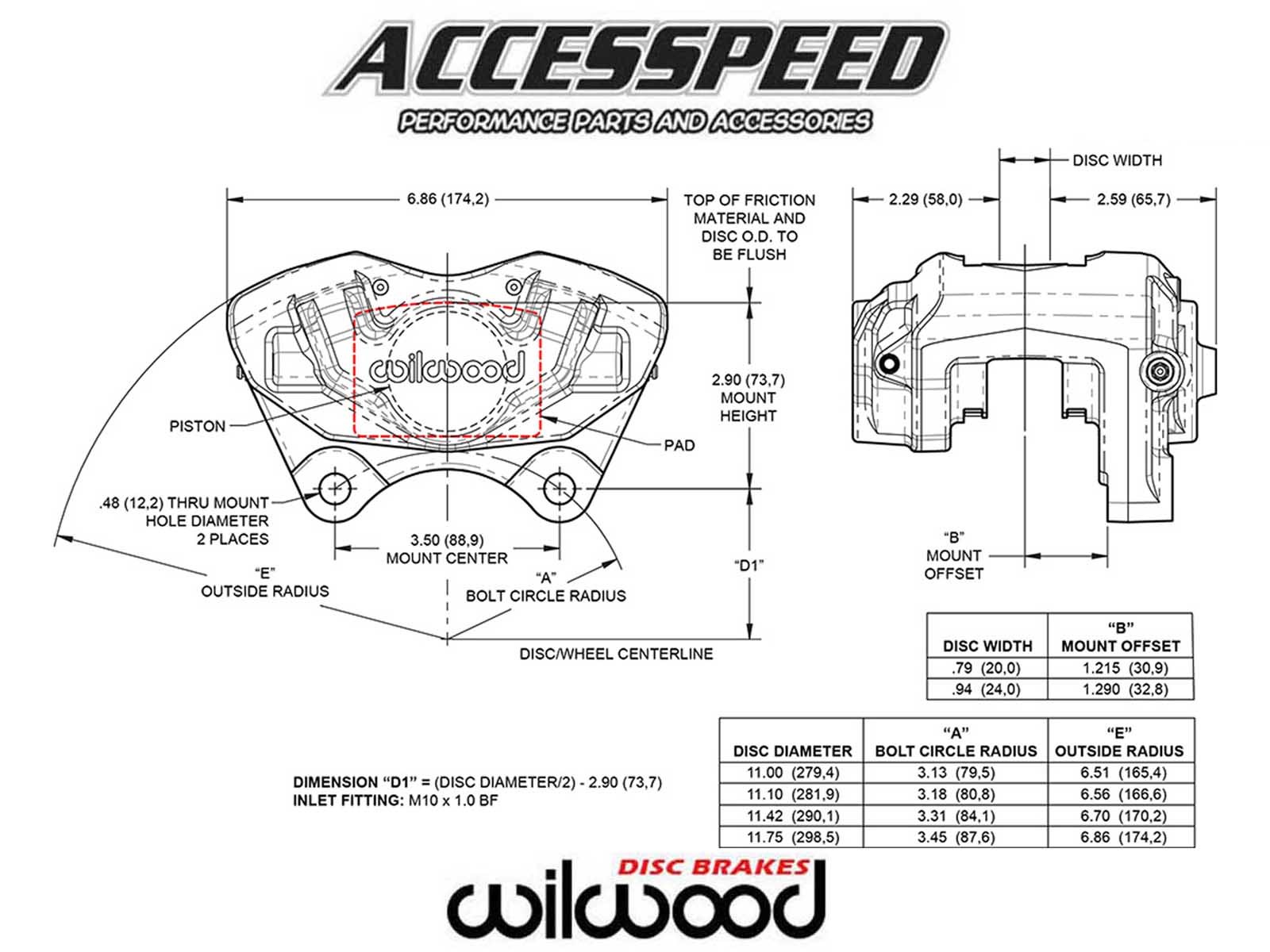 Wilwood 120-17172-RD D45 Brake Caliper, Front, 1.88, .94 Rotor, 3.50 Mount, Red for Porsche |