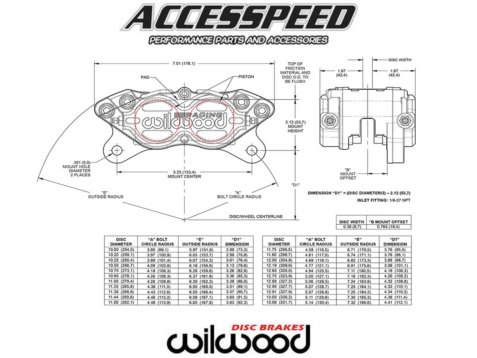 The Wilwood XRD Lug Mount forged caliper from Accesspeed represents the newest generation of Wilwood calipers available as an upgrade or replacement for applications previously using the long-standing Dynalite model series. Wilwood XRD calipers combine pure race technology with several new exclusive Wilwood performance enhancements. A sleek profile with superior strength and a fully detailed machined finish provides the performance for competition.