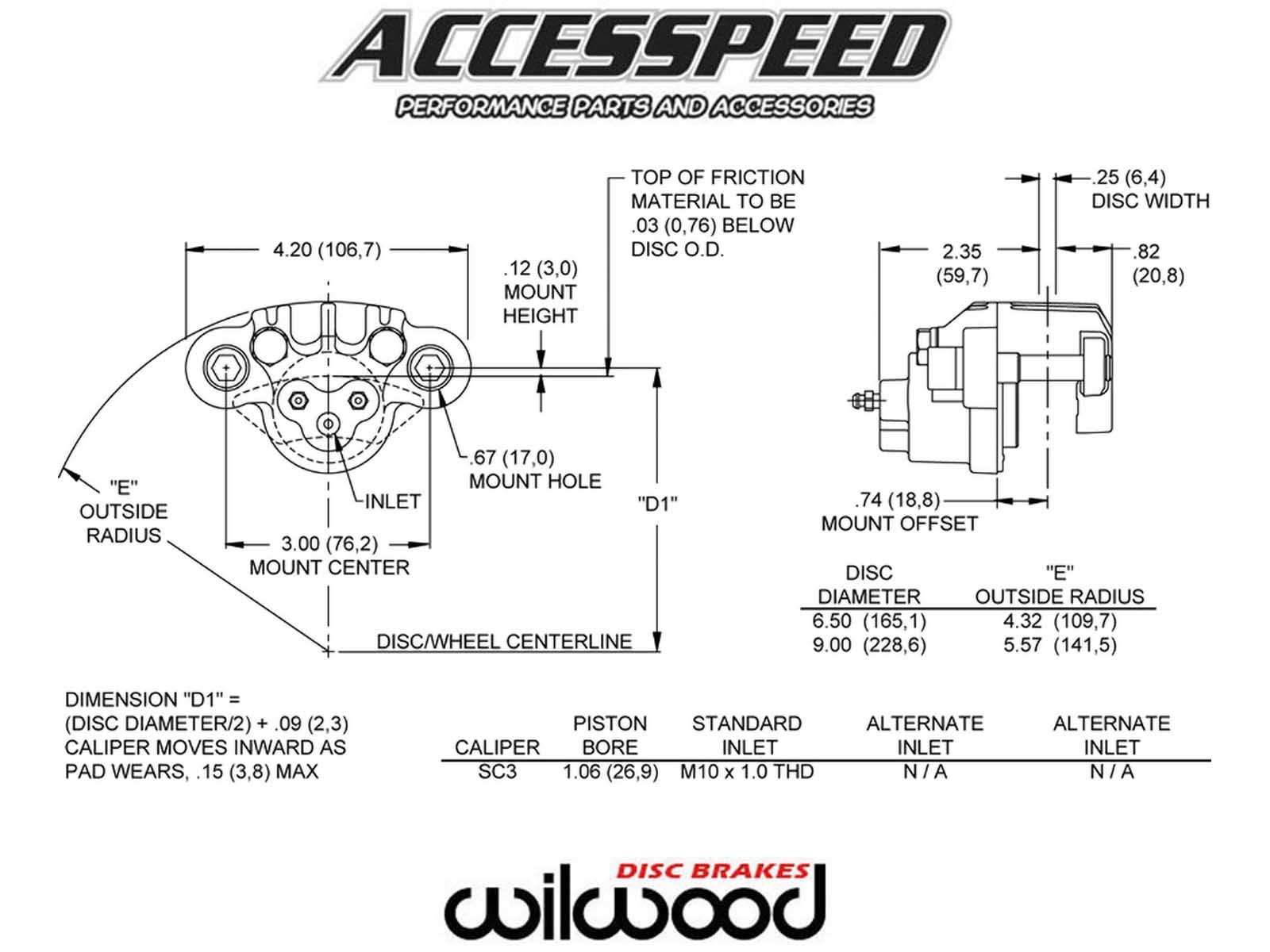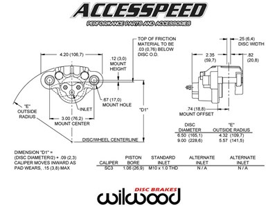Designed, engineered and manufactured in the U.S.A., the Wilwood SC floating die cast aluminum caliper from Accesspeed is a strong, compact, inexpensive answer to the braking needs of recreational, agricultural and industrial vehicles. Features of this single piston design include availability of either 1.06”, 1.19” or 1.25” bore size, fitted dust seal to prevent ingress of environmental contamination, dual bleed fittings for versatility in mounting position and fluid inlets in M10 x 1.0 banjo.