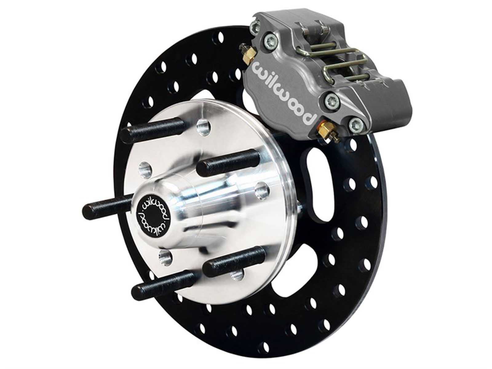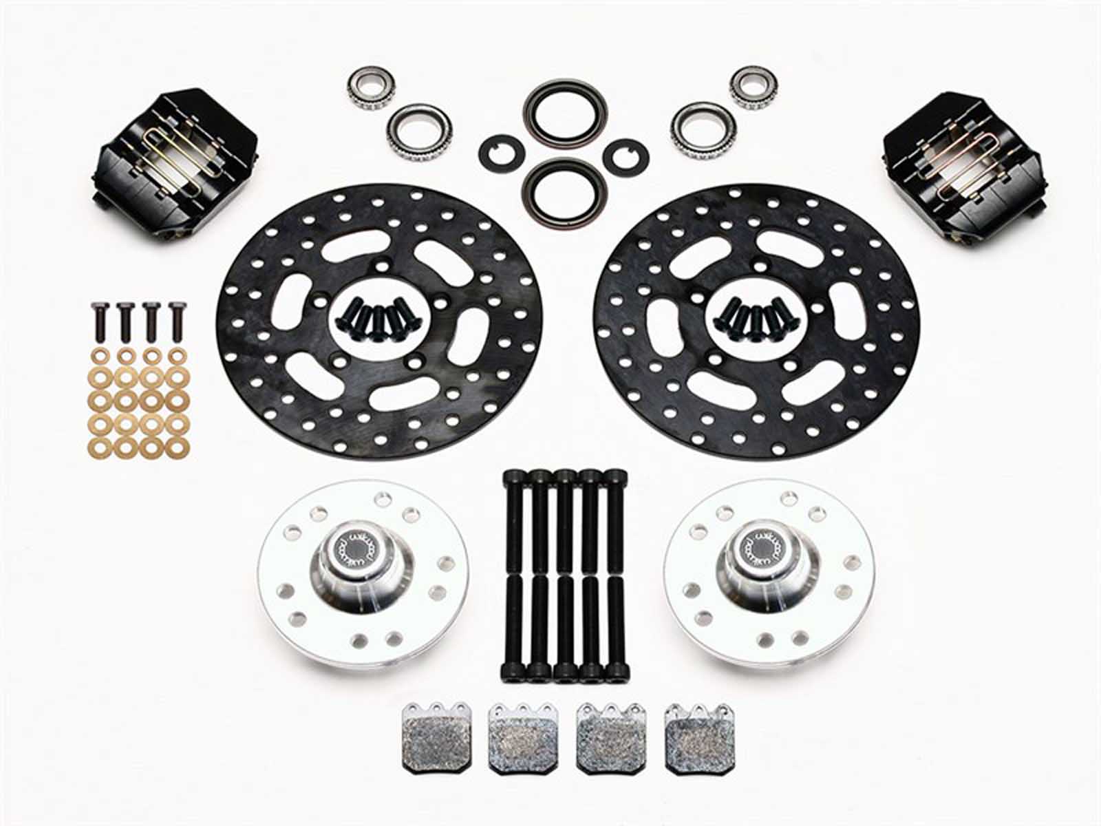 Wilwood's DPS Front Drag kits incorporate the newest DynaPro caliper technology in this traditional style front brake kit. DPS kits are built for the common front spindles and aftermarket struts used on four-wheel disc brake drag cars that weigh in under 2,400 pounds. The billet DPS caliper is a fixed mount, two-piston design that mounts directly to the spindle with a bolt-on bracket. Forged billet, five lug hubs with direct mount lightweight steel rotors combine to provide consistent braking with an average weight savings of 35 pounds over stock drum or disc brakes. Kits include all new hardware, wheel bearings, and seals. Requires Wilwood Flexline Brake Lines, sold separately.