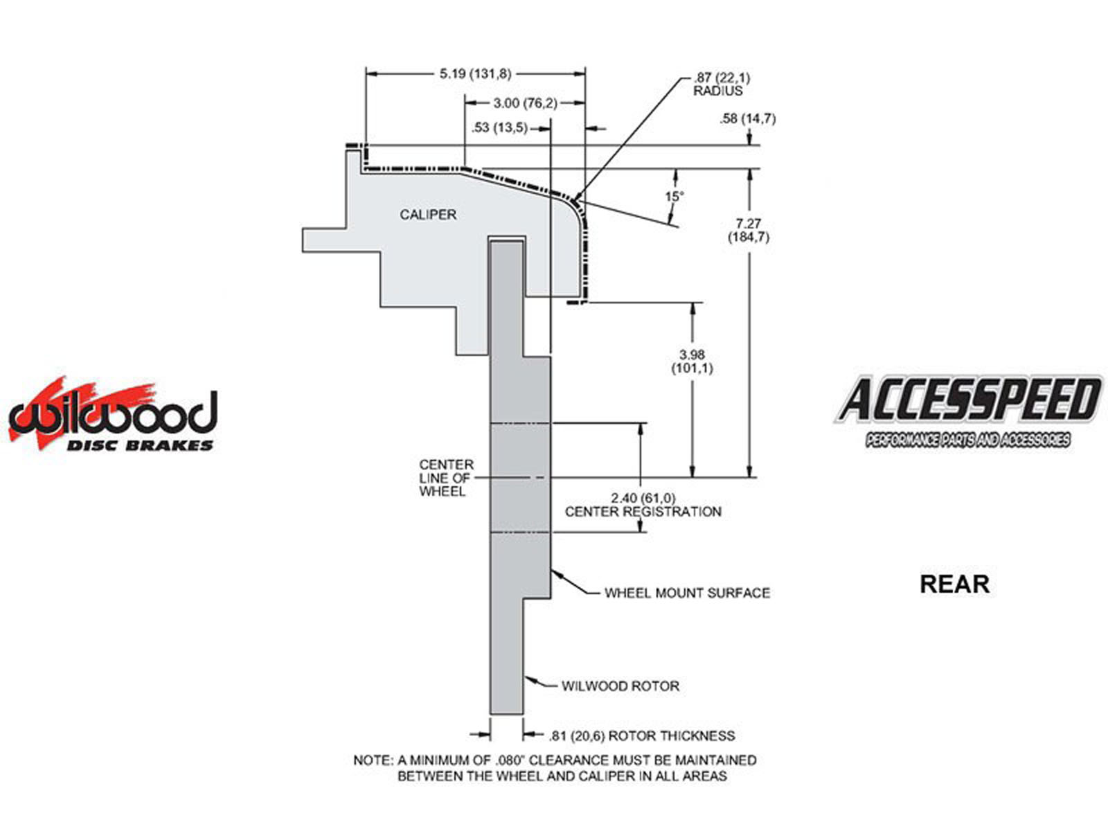 Black Calipers. See separate listing for the red caliper systems. Installation of Wilwood Disc Brake Kits may affect the wheel offset and will require a larger diameter wheel for caliper clearance. All returned orders are subject to a re-stocking fee, so please make sure your wheels will work before ordering. Shipping Promotions are valid in the Lower 48 States only. For all other areas, please contact us for a discounted rate quote.