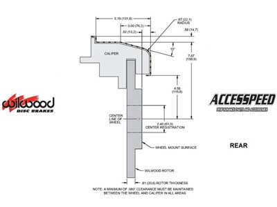 Black Calipers. See separate listing for the red caliper systems. Installation of Wilwood Disc Brake Kits may affect the wheel offset and will require a larger diameter wheel for caliper clearance. All returned orders are subject to a re-stocking fee, so please make sure your wheels will work before ordering. Shipping Promotions are valid in the Lower 48 States only.  For all other areas, please contact us for a discounted rate quote.