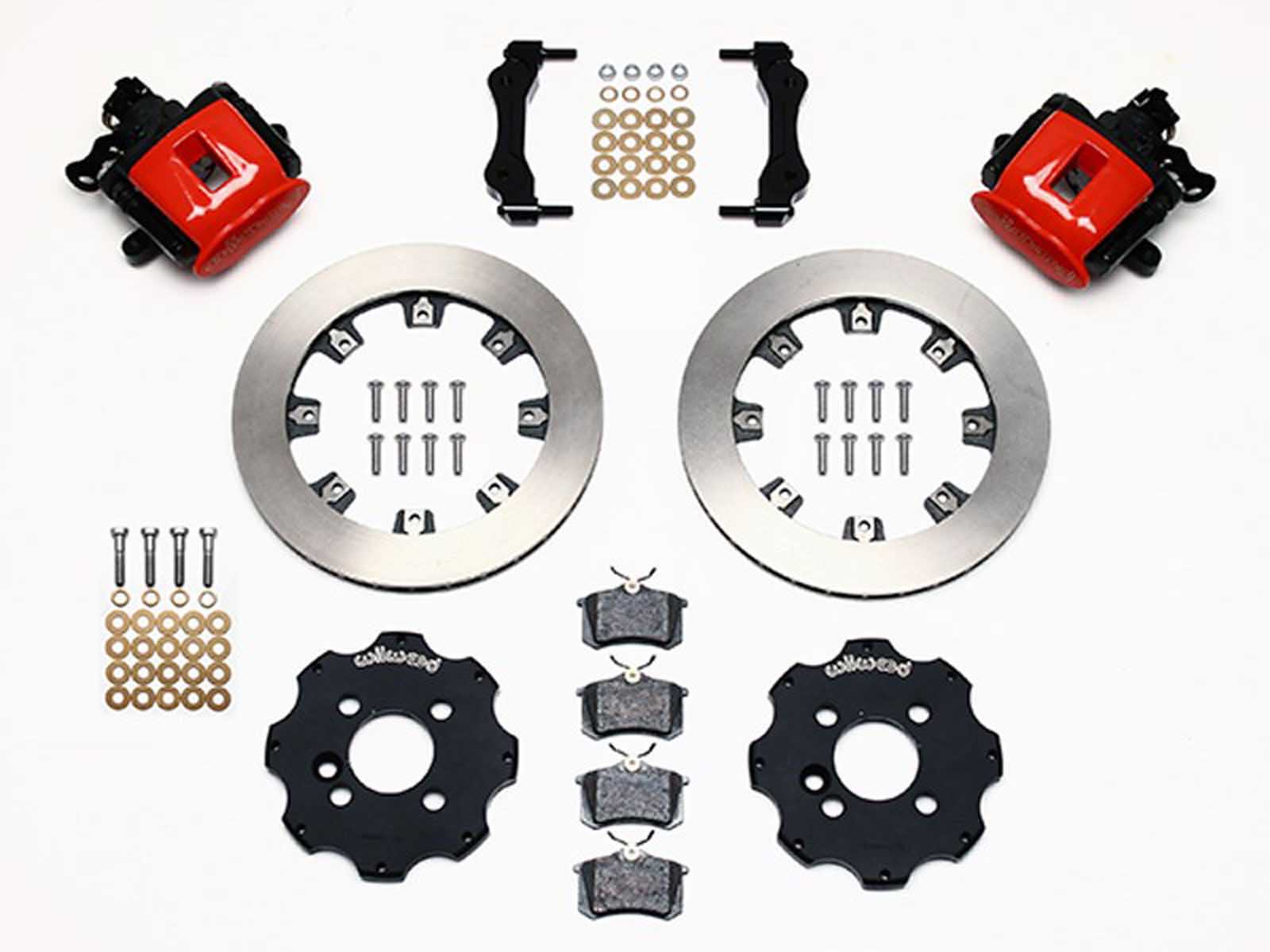 Red Calipers. See separate listing for the black caliper systems. Installation of Wilwood Disc Brake Kits may affect the wheel offset and will require a larger diameter wheel for caliper clearance. All returned orders are subject to a re-stocking fee, so please make sure your wheels will work before ordering. Shipping Promotions are valid in the Lower 48 States only. For all other areas, please contact us for a discounted rate quote.?