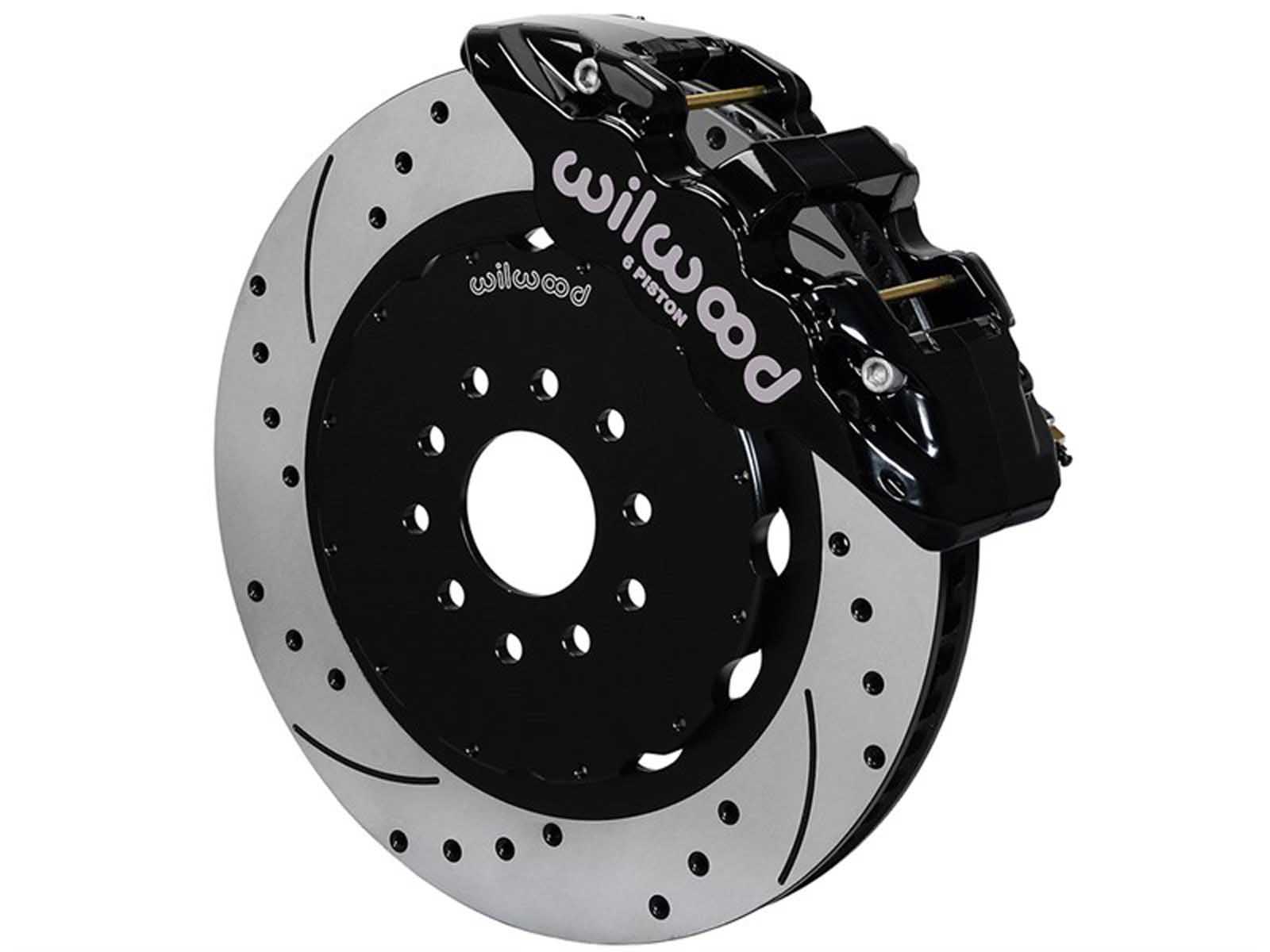 Wilwood 140-10830-D AERO6 Front Big Brake Kit With Black Calipers and Drilled & Slotted Rotors 2005 2006 2007 2008 2009 2010 2011 2012 2013 2014 Ford Mustang