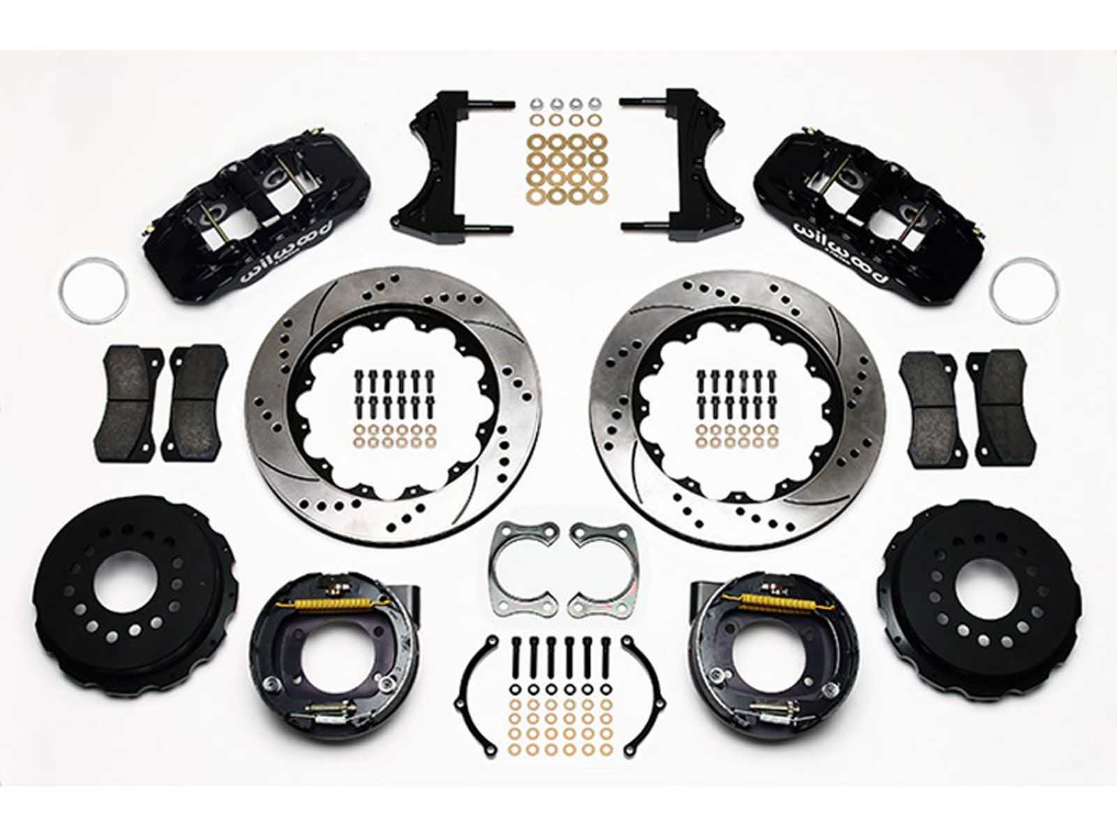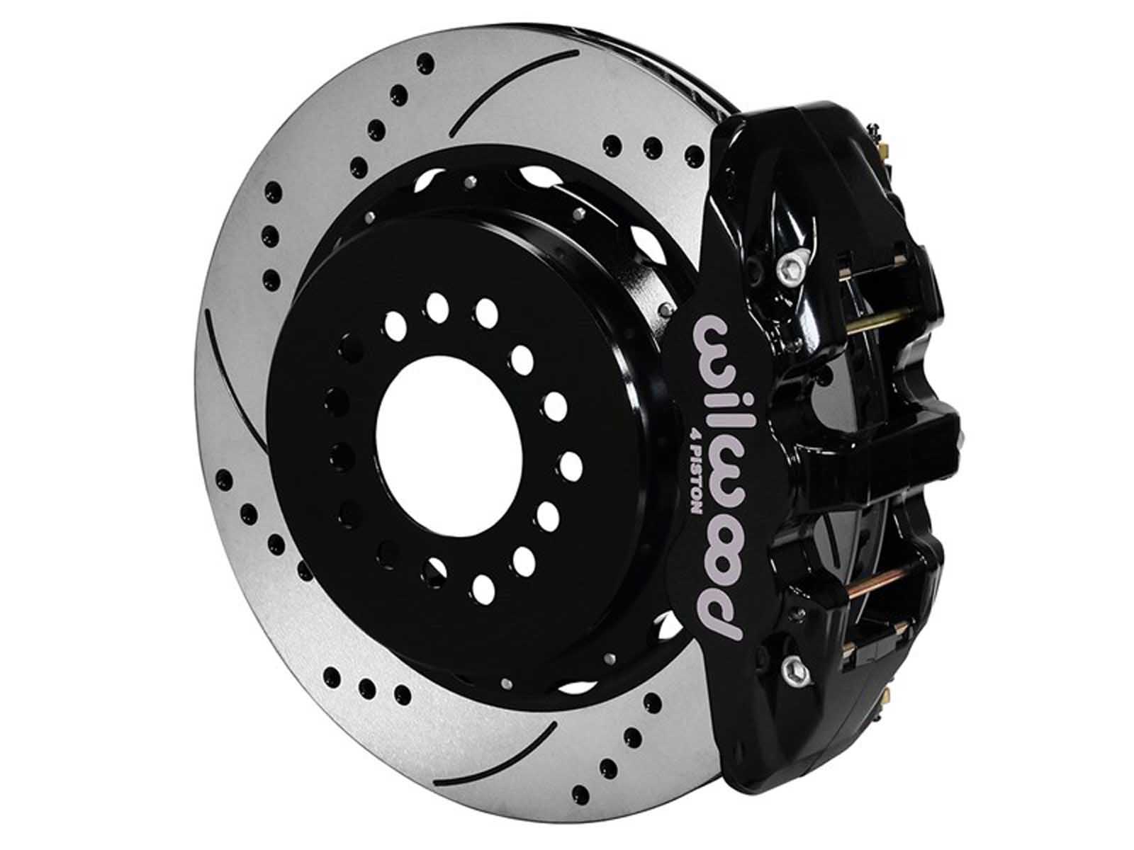 Wilwood 140-10951-D AERO4 14" Rear Big Brake Kit With Black Calipers and Drilled Rotors, Fits Various 1963-1989 Dodge, 1965-1989 Chrysler & 1965-1983 Plymouth Models With 8.75" & 9.75" Mopar/Dana 60 Rear Ends and 2.36" Axle Offset