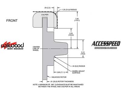 Black Calipers. See separate listing for the red caliper systems. Installation of Wilwood Disc Brake Kits may affect the wheel offset and will require a larger diameter wheel for caliper clearance. All returned orders are subject to a re-stocking fee, so please make sure your wheels will work before ordering. Shipping Promotions are valid in the Lower 48 States only. For all other areas, please contact us for a discounted rate quote.
