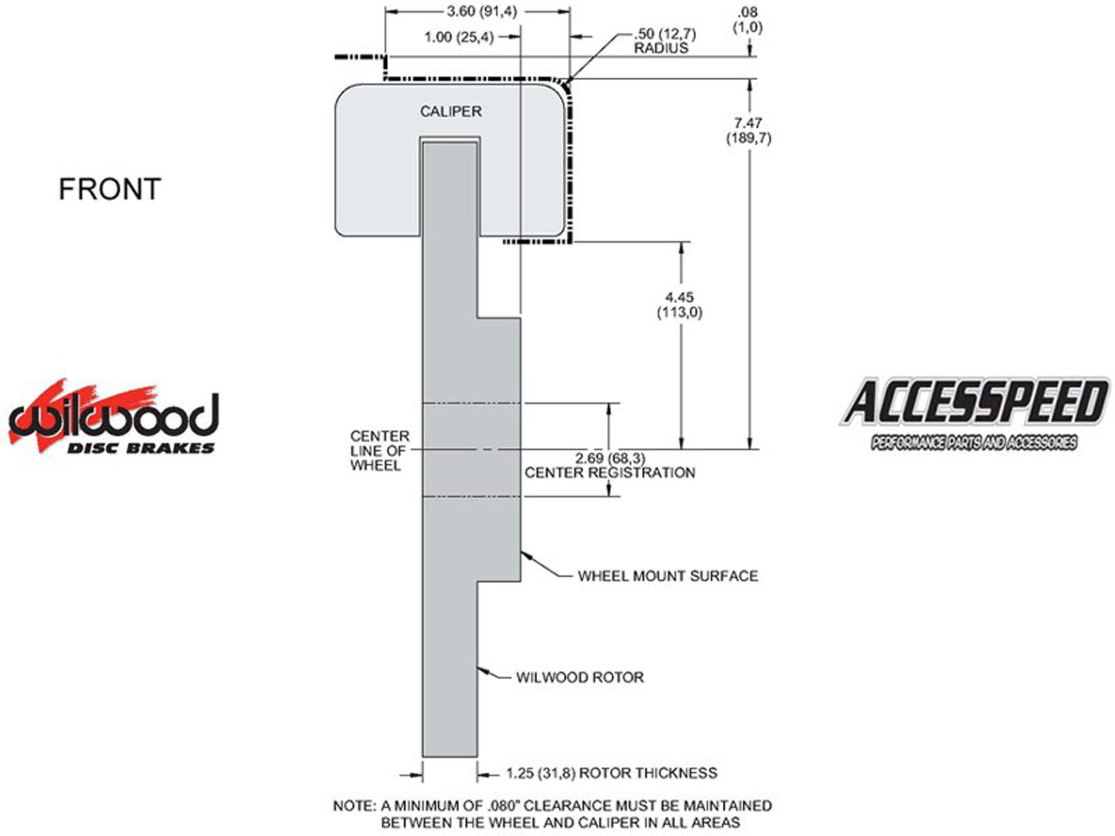 *This Brake Kit may require 17-inch or larger wheels or wheels spacers for proper fit. Please refer to the wheel clearance diagram to check to see if it will fit your specific wheel.