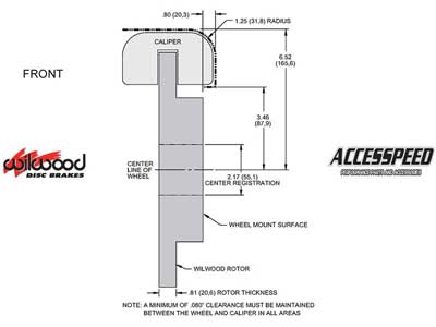 Black Calipers. See separate listing for the red caliper systems. Installation of Wilwood Disc Brake Kits may affect the wheel offset and will require a larger diameter wheel for caliper clearance. All returned orders are subject to a re-stocking fee, so please make sure your wheels will work before ordering. Shipping Promotions are valid in the Lower 48 States only.  For all other areas, please contact us for a discounted rate quote.