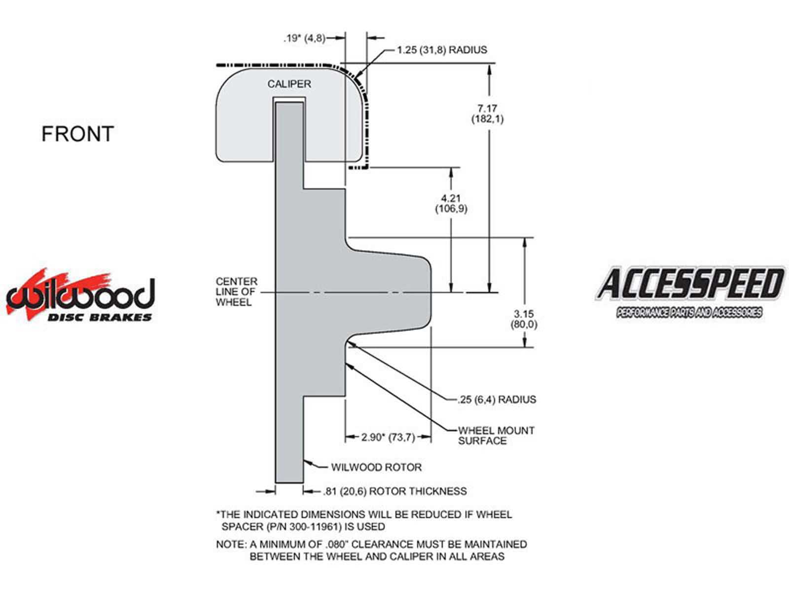 Red Calipers. See separate listing for the black caliper systems. Installation of Wilwood Disc Brake Kits may affect the wheel offset and will require a larger diameter wheel for caliper clearance. All returned orders are subject to a re-stocking fee, so please make sure your wheels will work before ordering. Shipping Promotions are valid in the Lower 48 States only. For all other areas, please contact us for a discounted rate quote.