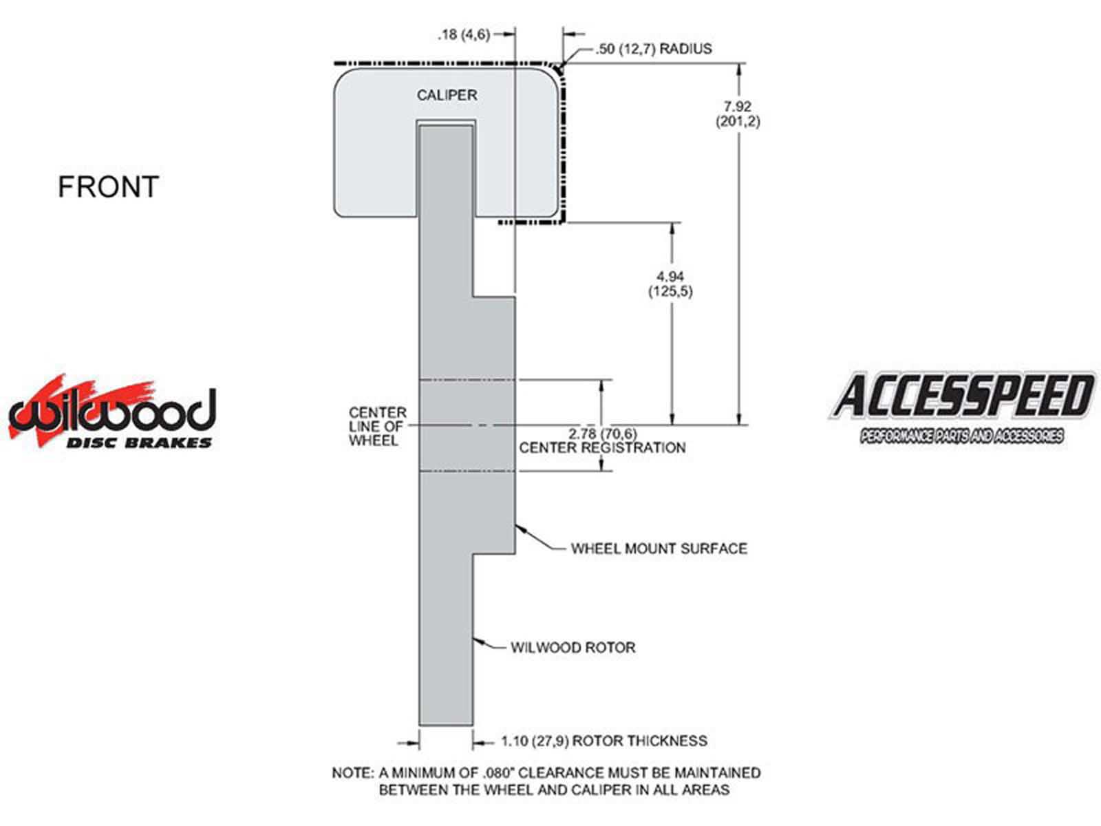 *This Brake Kit may require 18-inch or larger wheels or wheels spacers for proper fit. Please refer to the wheel clearance diagram to check to see if it will fit your specific wheel.