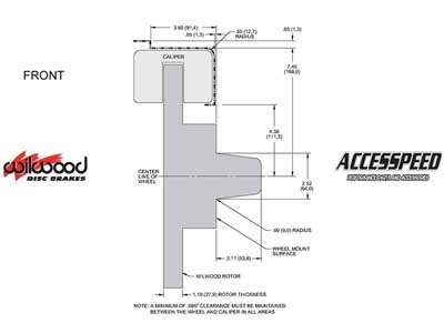 *This Brake Kit may require 17-inch or larger wheels. Please refer to the wheel clearance diagram image to verify caliper clearance for your specific wheel.