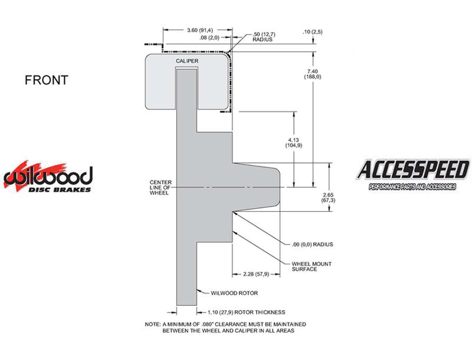 Red Calipers. See separate listing for the black caliper system. Installation of Wilwood Disc Brake Kits may affect the wheel offset and will require a larger diameter wheel for caliper clearance. All returned orders are subject to a re-stocking fee, so please make sure your wheels will work before ordering. Shipping Promotions are valid in the Lower 48 States only. For all other areas, please contact us for a discounted rate quote.