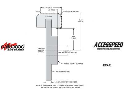 Black Calipers. See separate listing for the red caliper systems. Installation of Wilwood Disc Brake Kits may affect the wheel offset and will require a larger diameter wheel for caliper clearance. All returned orders are subject to a re-stocking fee, so please make sure your wheels will work before ordering. Shipping Promotions are valid in the Lower 48 States only.  For all other areas, please contact us for a discounted rate quote.