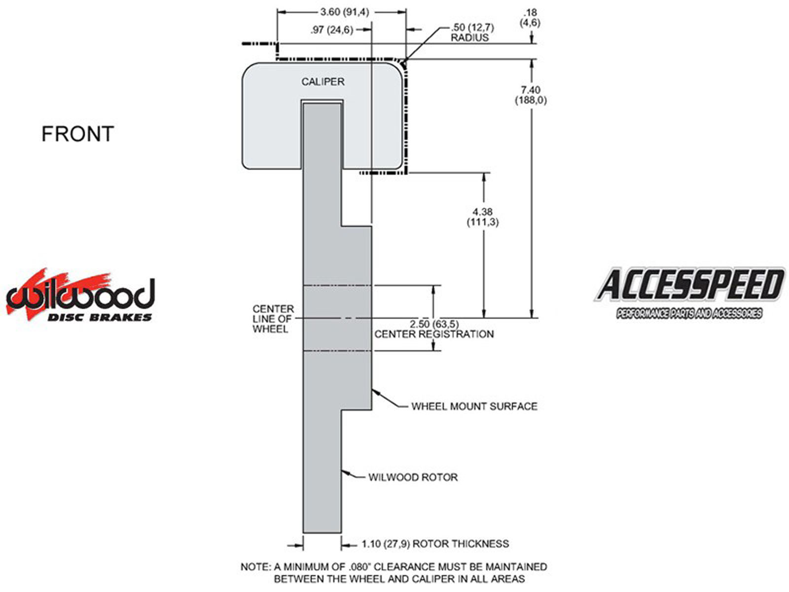 *This Brake Kit may require 17-inch or larger wheels or wheels spacers for proper fit. Please refer to the wheel clearance diagram to check to see if it will fit your specific wheel.