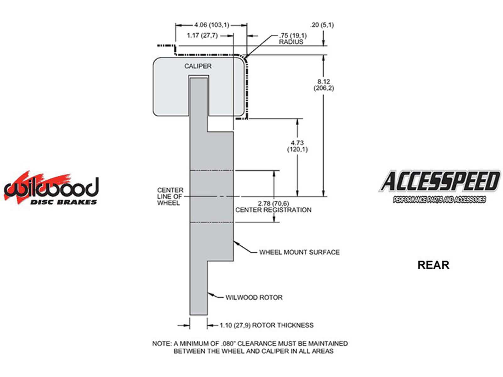 Black Calipers. Please see separate listing for Red Caliper systems.  Installation of Wilwood Disc Brake Kits may affect the wheel offset and will require a larger diameter wheel for caliper clearance. All returned orders are subject to a re-stocking fee, so please make sure your wheels will work before ordering. Shipping Promotions are valid in the Lower 48 States only.  For all other areas, please contact us for a discounted rate quote.