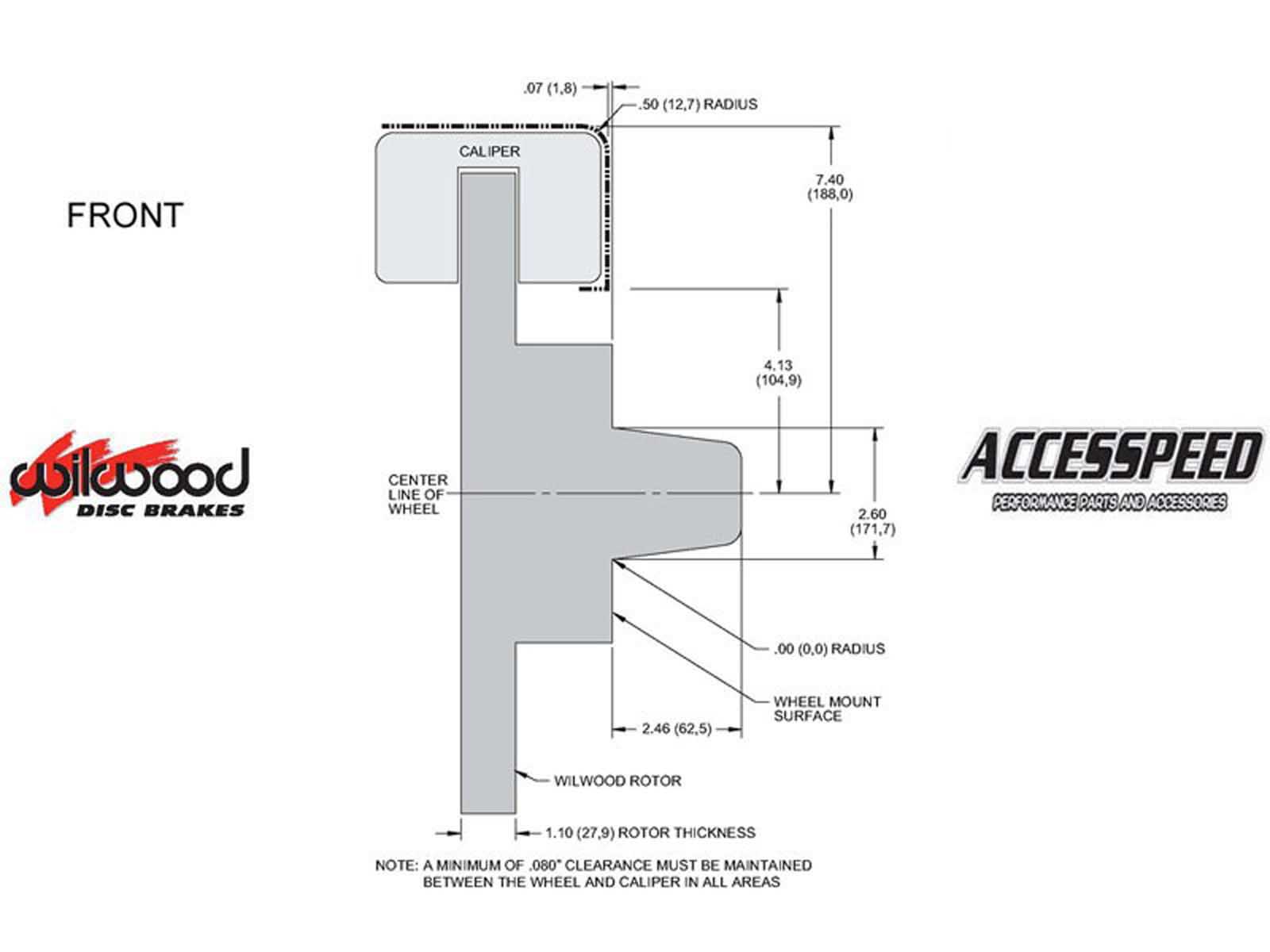 This system includes Black Calipers. See separate listing for the red caliper system. Installation of Wilwood Disc Brake Kits may affect the wheel offset and will require a larger diameter wheel for caliper clearance. All returned orders are subject to a re-stocking fee, so please make sure your wheels will work before ordering. Shipping Promotions are valid in the Lower 48 States only.  For all other areas, please contact us for a discounted rate quote.