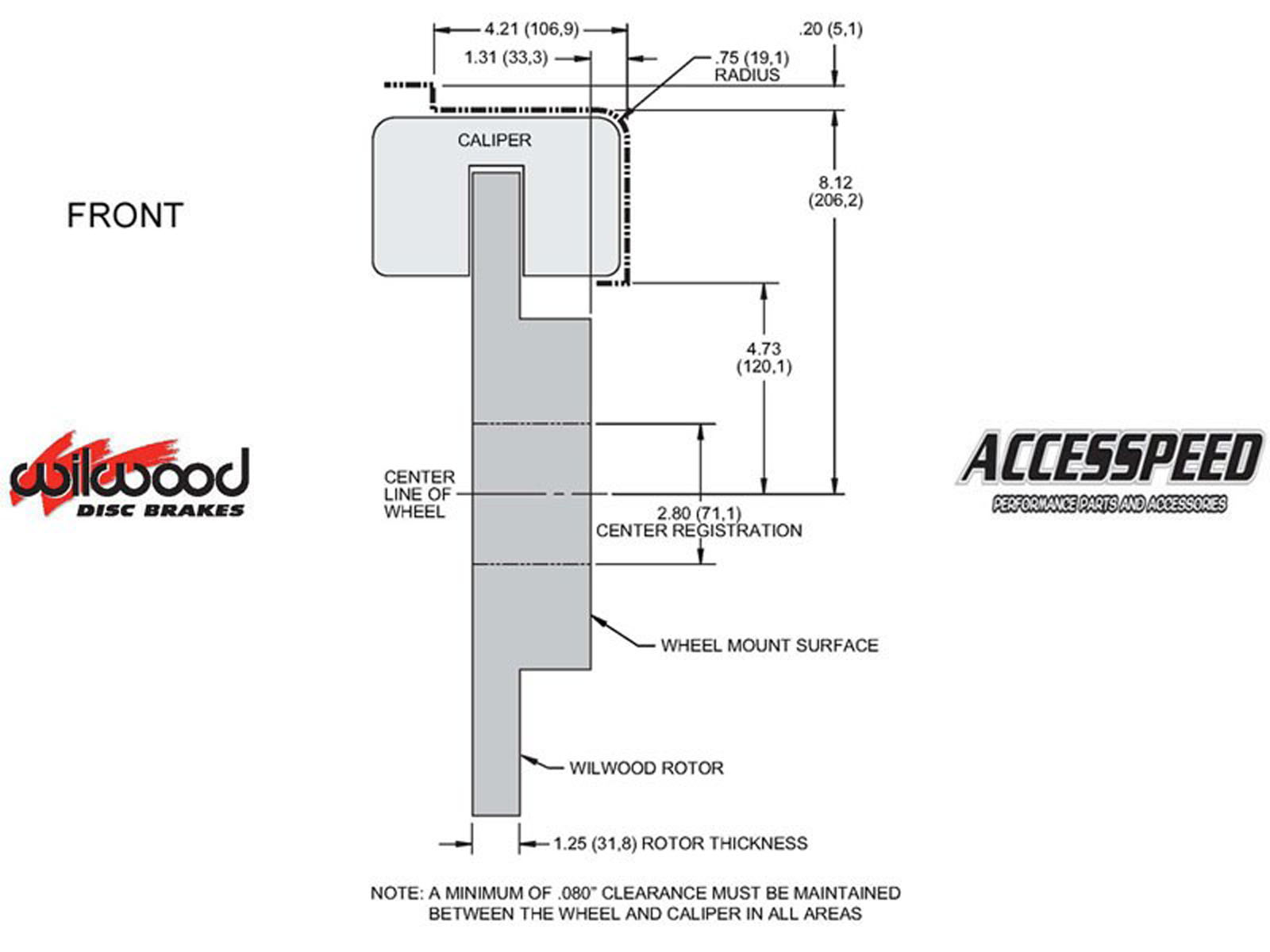*This Brake Kit may require 18-inch or larger wheels or wheels spacers for proper fit. Please refer to the wheel clearance diagram to check to see if it will fit your specific wheel.